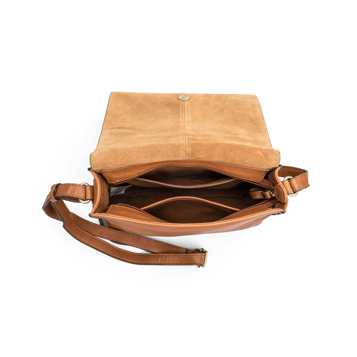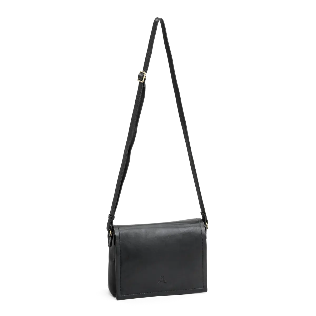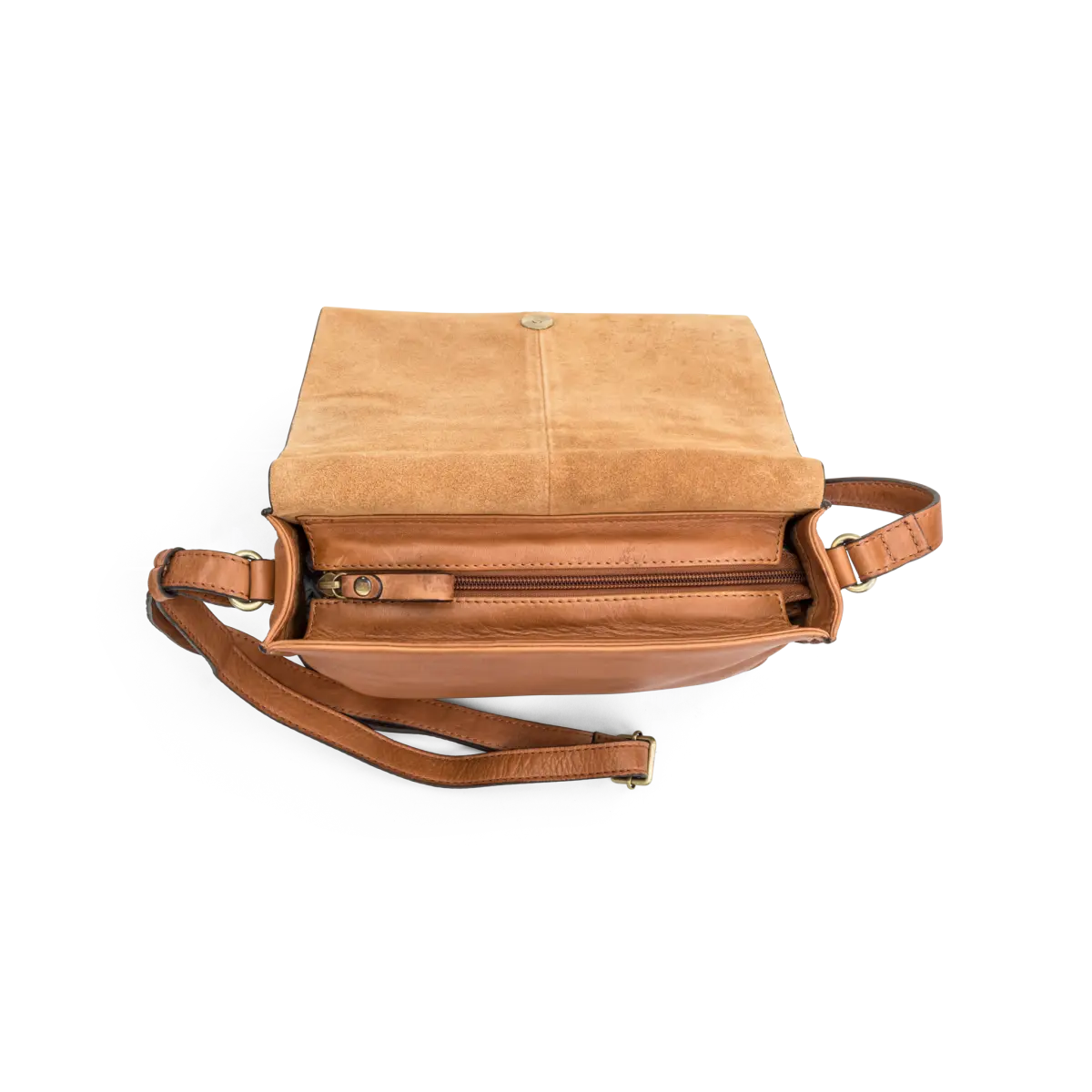 Väskan har en dragkedja under klaffen som skyddar innehållet på ett diskret sätt, samt en bakficka med dold magnetknapp för snabb åtkomst. Invändigt finns en praktisk ficka med dragkedja för nycklar, kort eller andra småsaker. Den vadderade bottnen gör att väskan står stadigt och håller formen över tid.