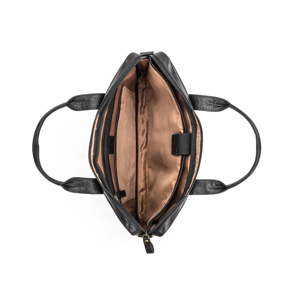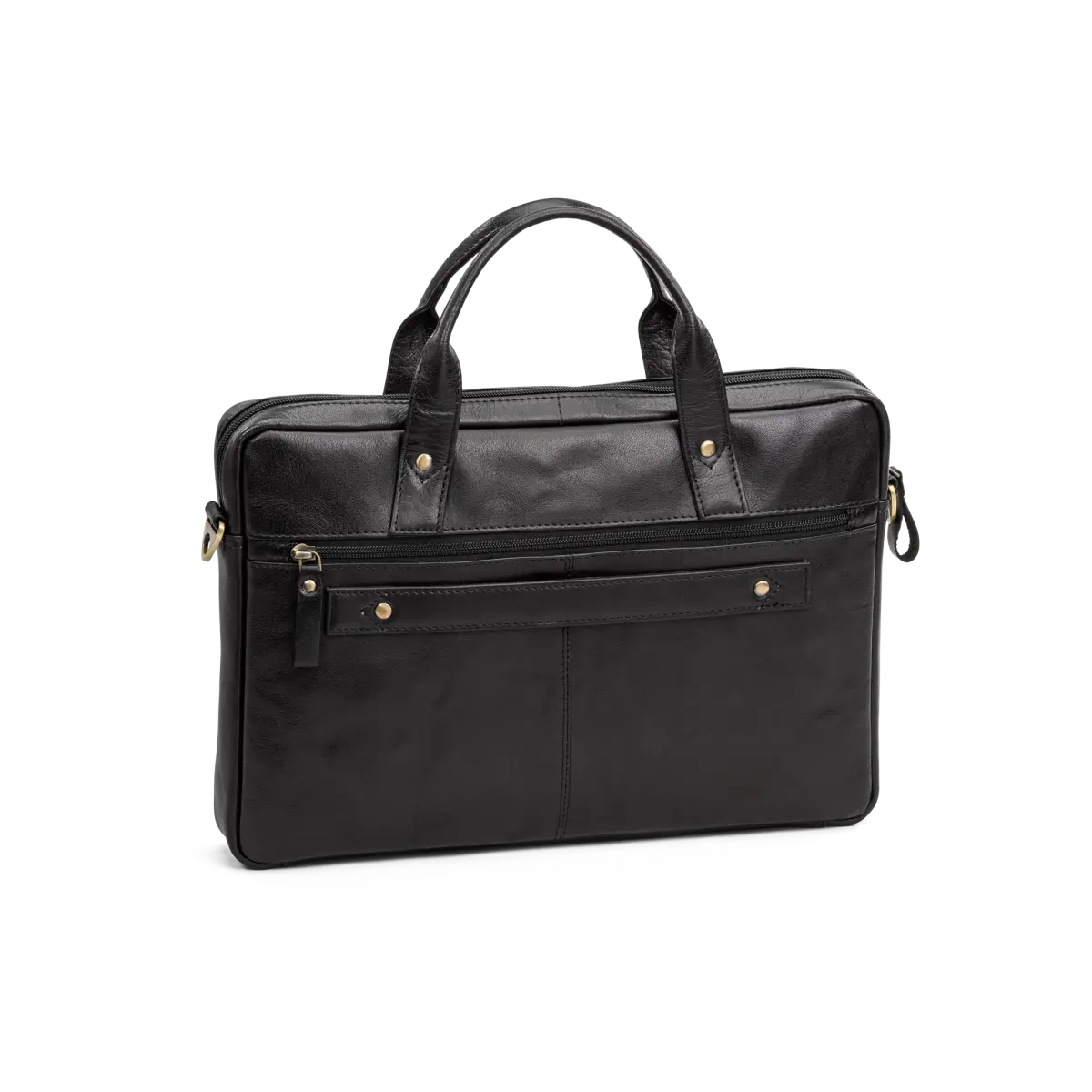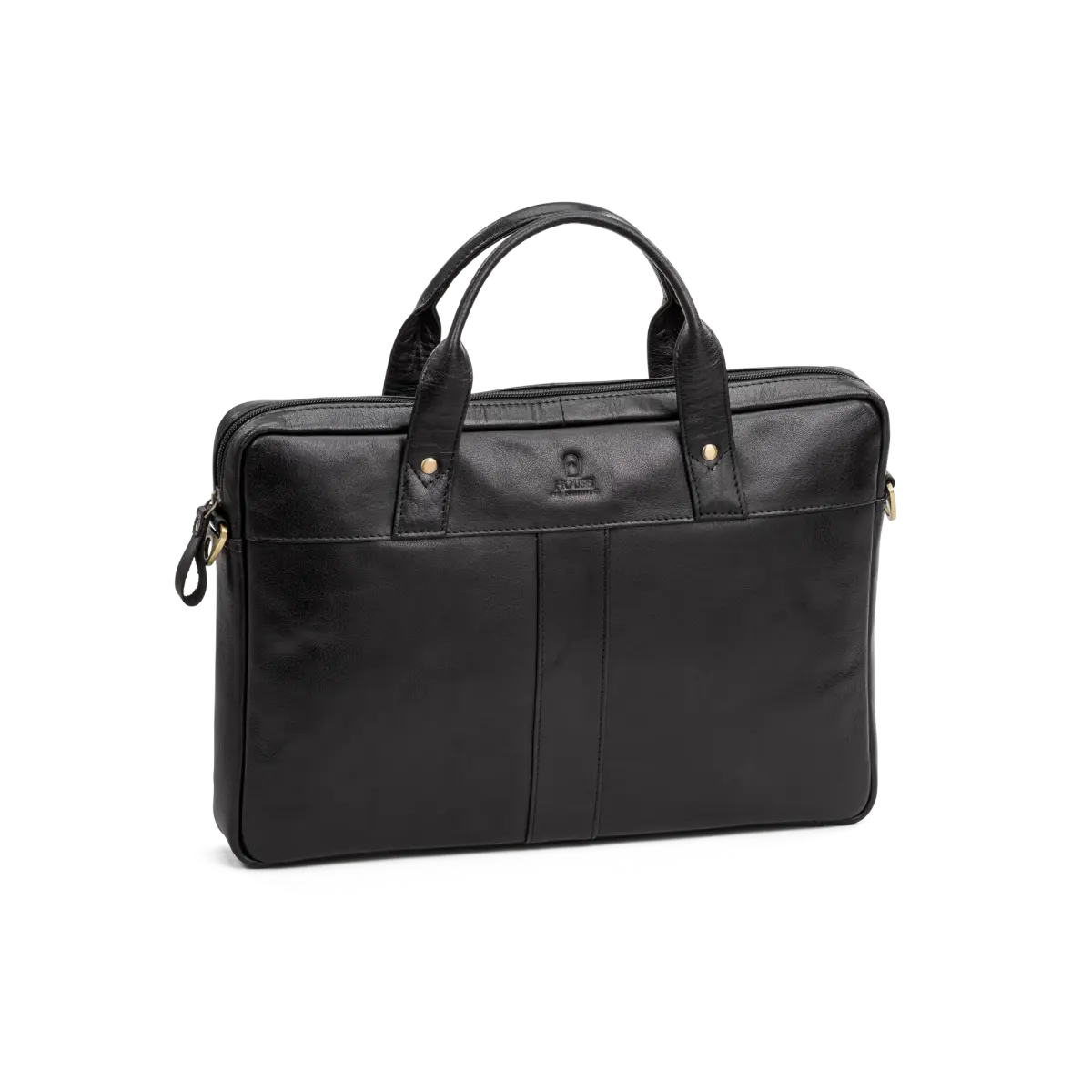 Väskan rymmer en 14-tums laptop i ett vadderat huvudfack med dragkedja för säkert skydd. Invändigt finns plats för dokument, laddare och tillbehör. Baktill sitter en stor dragkedjeficka som gör det enkelt att komma åt viktiga saker som nycklar, pass eller mobil. Allt hålls på plats utan att väskan tappar sin eleganta form.