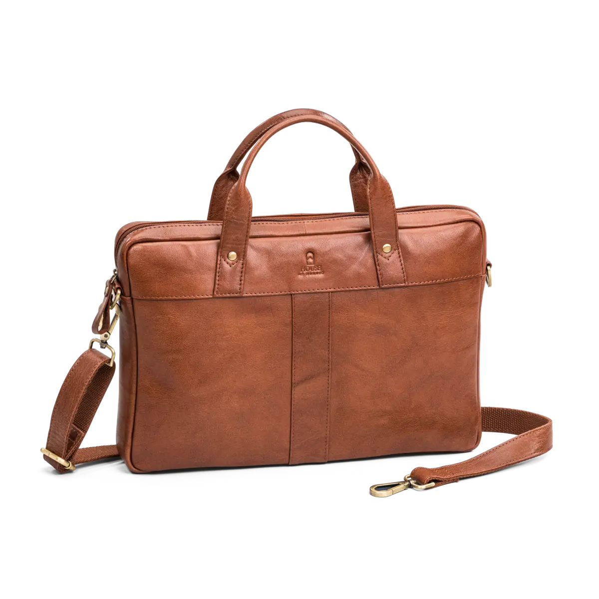 House of Nordic Classic Laptopväska 14" kombinerar stilren design med praktisk funktionalitet. Tillverkad i äkta skinn med en mjuk, naturlig struktur som ger ett exklusivt uttryck. Den klassiska siluetten gör väskan lika snygg till jobbet, mötet eller resan. Passar både kvinnor och män som vill bära sin dator med stil.