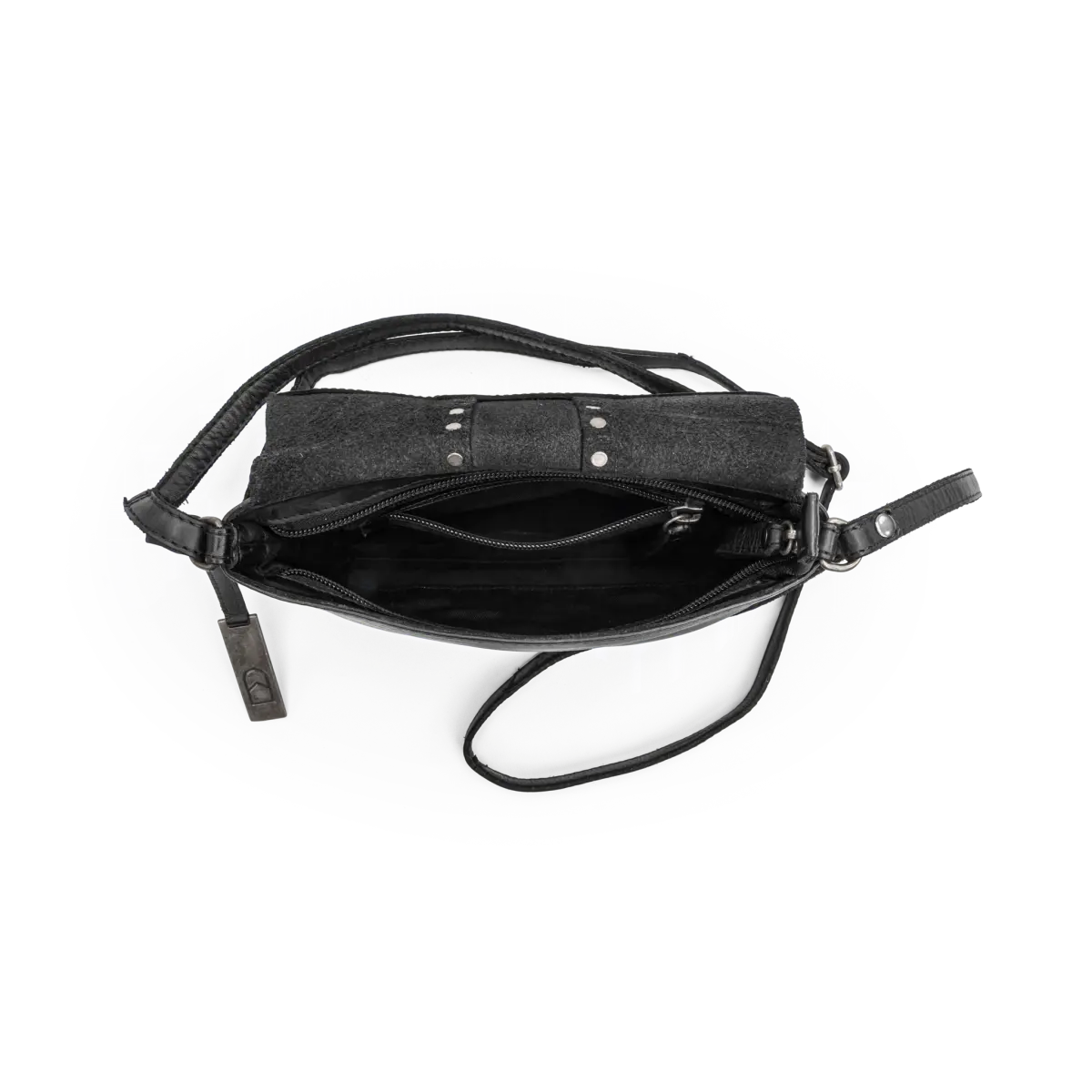 Under den stiliga klaffen finns en praktisk dragkedjeficka som håller dina värdesaker säkra. Invändigt finns en stor mobilficka och en innerficka med dragkedja, medan baksidan har en extra ficka för snabb åtkomst till småsaker. Väskan är mycket lätt, vilket gör den bekväm att bära hela dagen.
