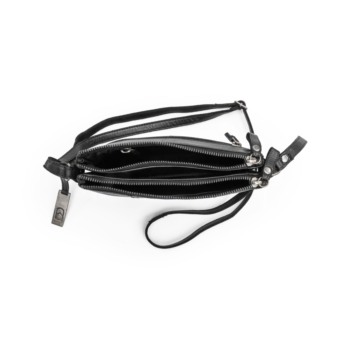 Trots sitt kompakta format erbjuder väskan smart förvaring med flera fack. Den har ett mittfack med magnetisk tryckknapp, en innerficka med dragkedja, ett kortfack, en mobilficka och en bakficka med dragkedja. Perfekt för att hålla ordning på kort, nycklar och telefon utan att väskan känns tung.