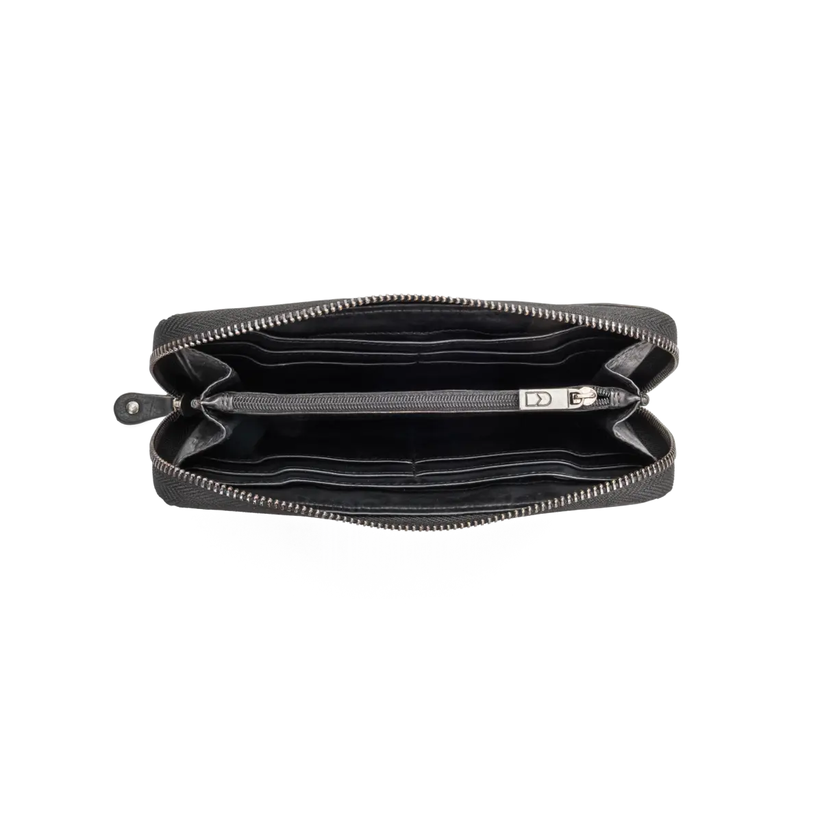 Med sina generösa mått på 19 × 9,5 × 2 cm erbjuder plånboken gott om plats för det viktigaste. Den har åtta kortfack, dubbla sedelfack samt ett mittfack med dragkedja för mynt. En genomtänkt inre layout gör det enkelt att hålla ordning, samtidigt som plånboken behåller en smidig och tunn profil.