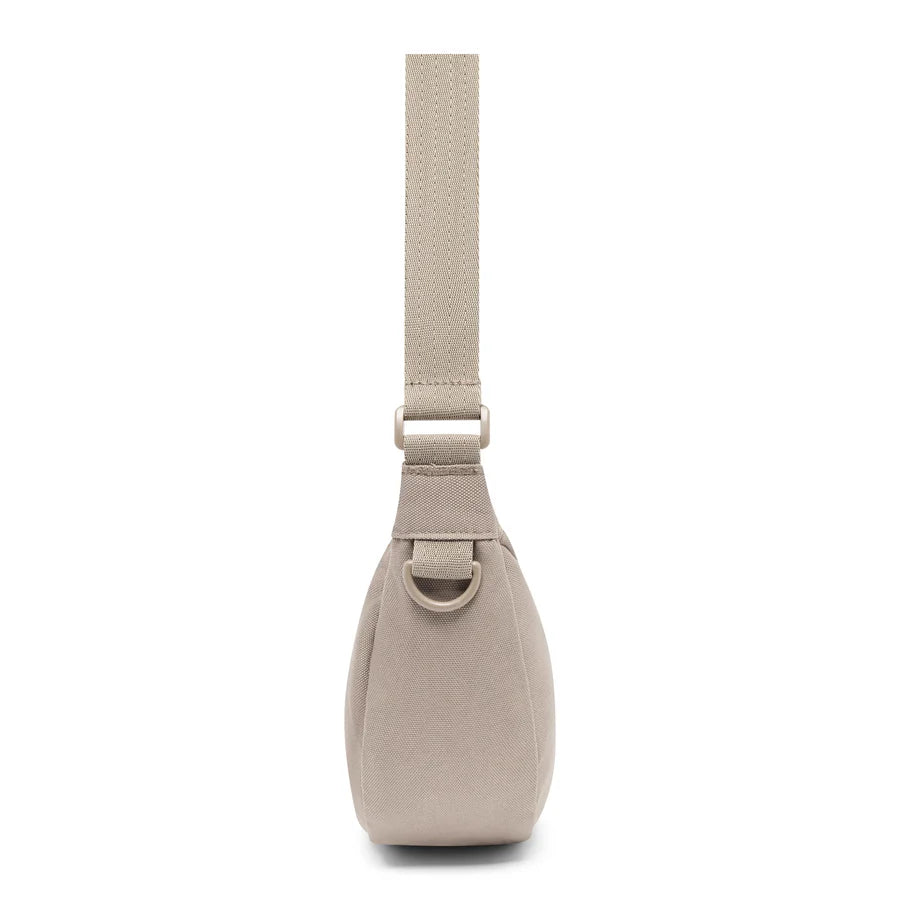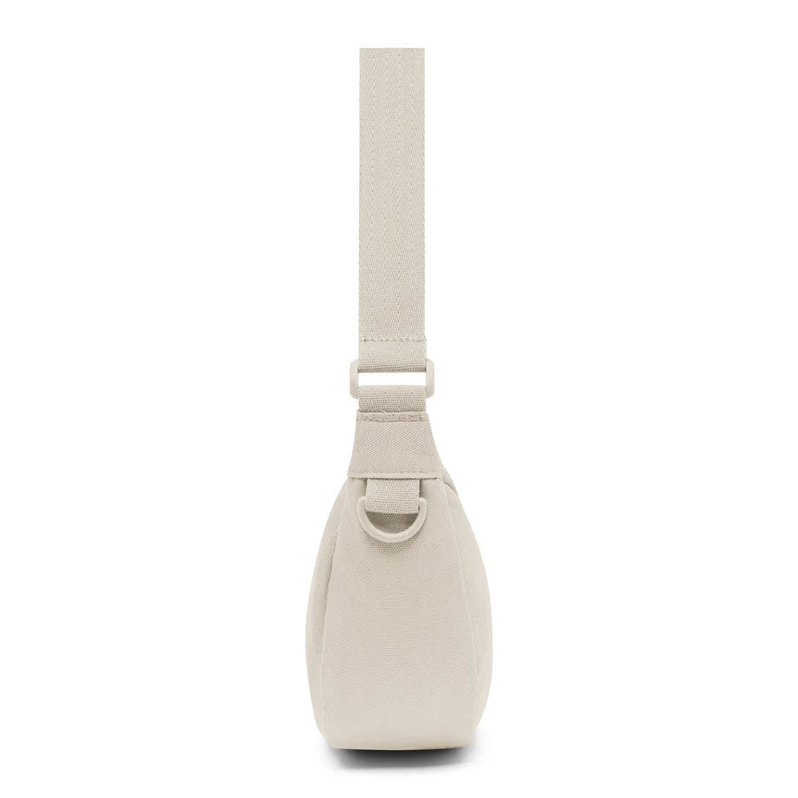 Den justerbara axelremmen kan förlängas upp till 112 cm, vilket gör att Ally Small kan bäras både som crossbody och över axeln. En praktisk D-ring gör det dessutom möjligt att fästa små tillbehör eller nycklar. Med sin låga vikt på endast 135 gram är väskan lätt att bära med sig hela dagen, perfekt för en promenad i stan eller en avslappnad utflykt.