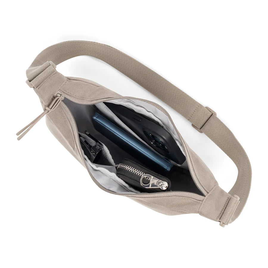 Med en volym på 1,3 liter rymmer väskan det mest nödvändiga, som mobil, nycklar och plånbok. Huvudfacket är utrustat med tre små innerfack och en högkvalitativ dragkedja med dragsko för enkel åtkomst. Trots sin kompakta storlek erbjuder väskan smarta lösningar som gör vardagen enklare.
