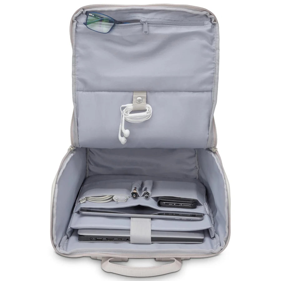 Ryggsäcken har ett vadderat laptopfack som rymmer datorer upp till 16 tum samt ett separat fack för surfplatta eller liknande. För ökad ordning finns fem mindre organisatoriska fack för vardagens prylar. På utsidan ger ett framfack med dragkedja snabb åtkomst till tillbehör, och elastiska sidofickor rymmer exempelvis vattenflaska eller paraply.