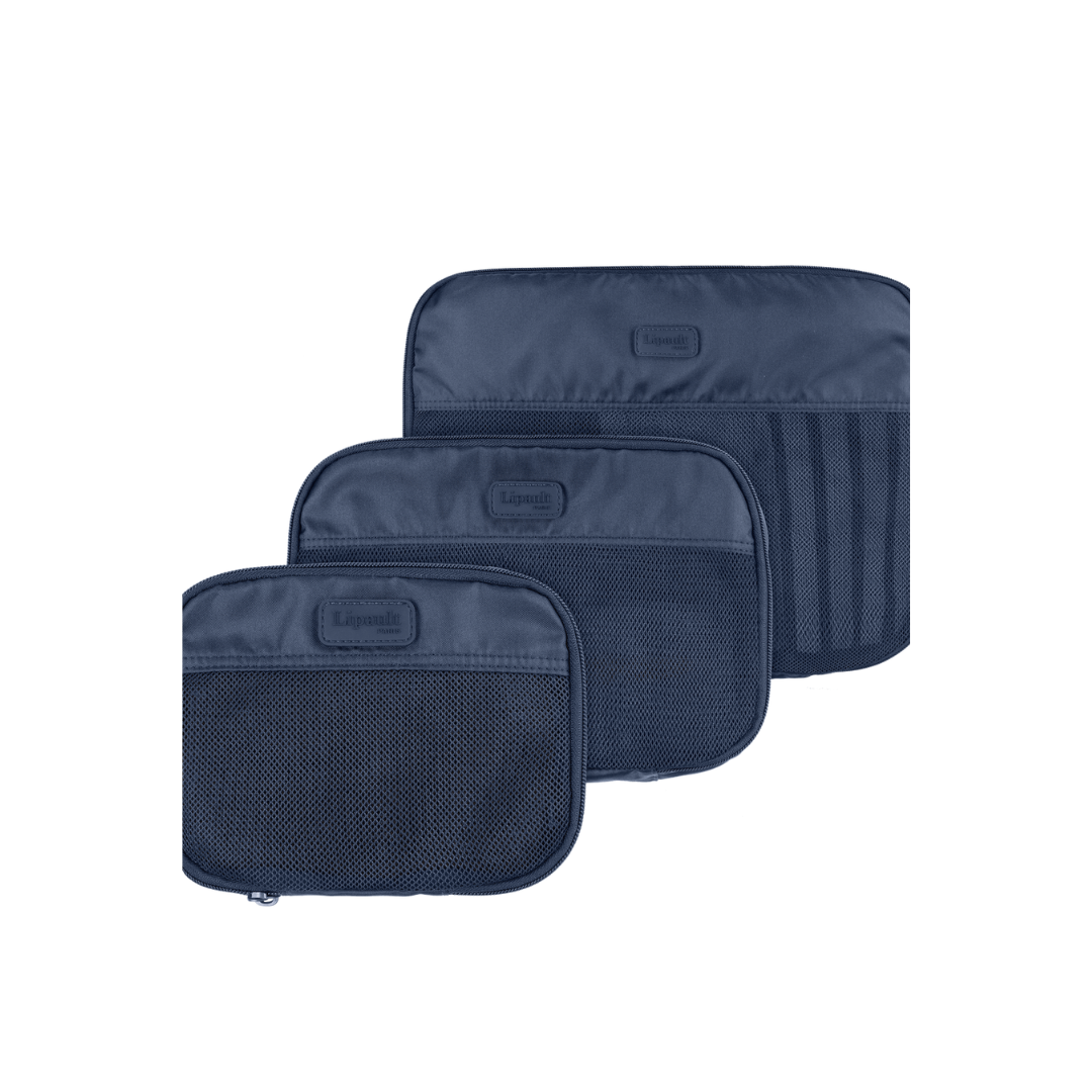 Varje packing cube har ett stort huvudfack med en meshpanel i botten som erbjuder överblick och luftcirkulation – perfekt för att hålla ordning och se innehållet snabbt.