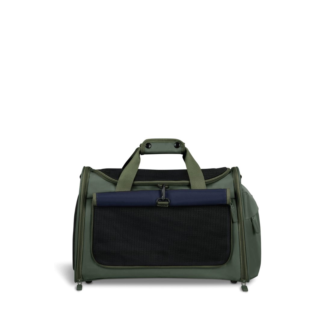 Tillverkad i slitstark och vattenavvisande twill‑nylon, är City Plume husdjursväska både robust och lätt. Den har två topphandtag, en smart sleeve‑funktion som passar kabinbagage, samt två dragkedjefickor på sidor och rygg – perfekt för extra tillbehör.