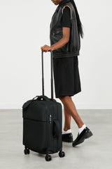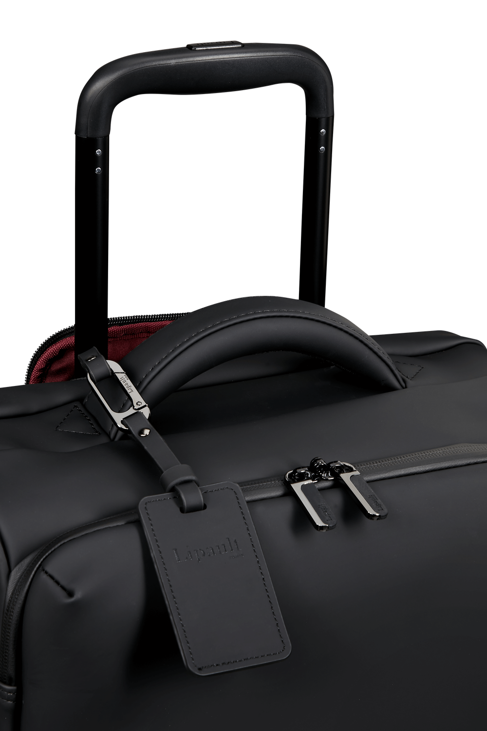 Den Lost In Berlin‑kabinväskan från Lipault har en unik matta finish med gummiliknande effekt och monokrom design, kompletterad av diskreta metalliska detaljer. Tillverkad i slitstark PU/polyester-blandning är den reptålig, vattentålig och står emot väderlek samtidigt som den bibehåller en urban, industriell känsla. Multidirektionella dubbla hjul och ett stadigt, teleskopiskt handtag garanterar smidiga förflyttningar genom flygplatsen.