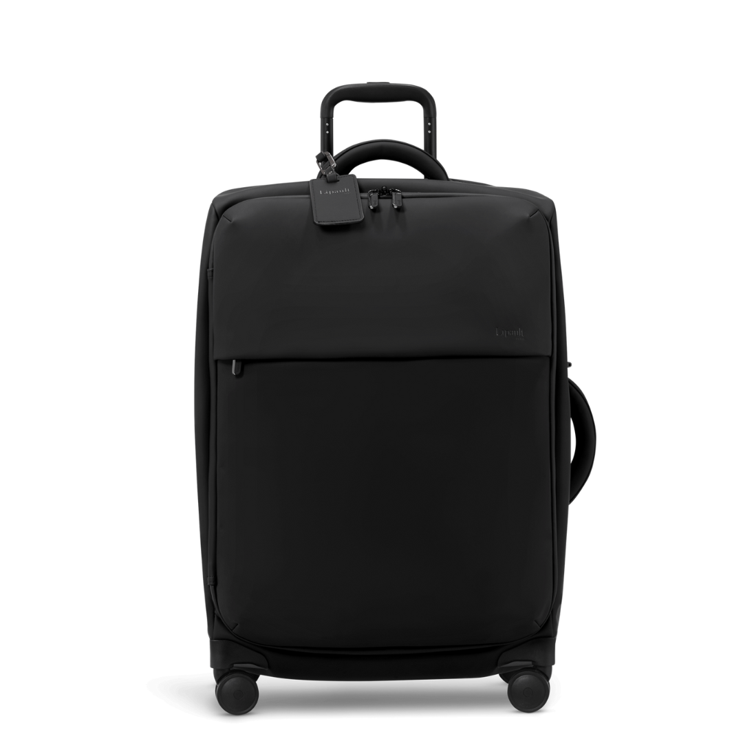 Lost In Berlin Mellanstor 63cm kombinerar en matt, gummiliknande PU/polyester-blandning som ger både slitstyrka och stilren, industrikänsla. Den vattenavvisande ytan och matta belagda dragkedjor skyddar innehållet mot väder, medan chassi i softside-format gör den flexibel men robust.