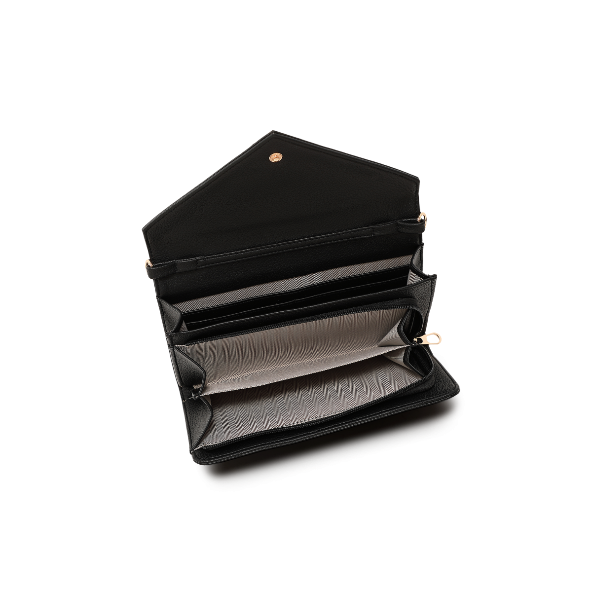 Inuti väskan hittar du sex kortfack, ett sedelfack och ett blixtlåsförsett fack – perfekt för mynt, mobilen eller småsaker du vill hålla ordning på. Den smarta layouten gör att du alltid har dina viktigaste tillhörigheter nära till hands, samtidigt som väskan håller sig smidig och nätt i handen eller över axeln.