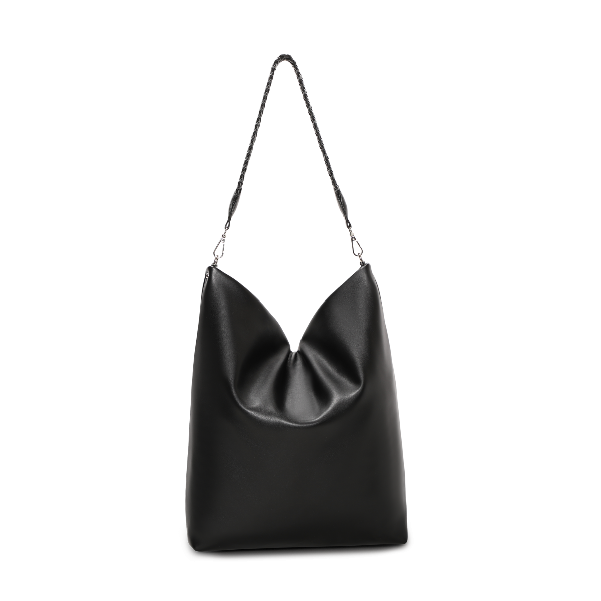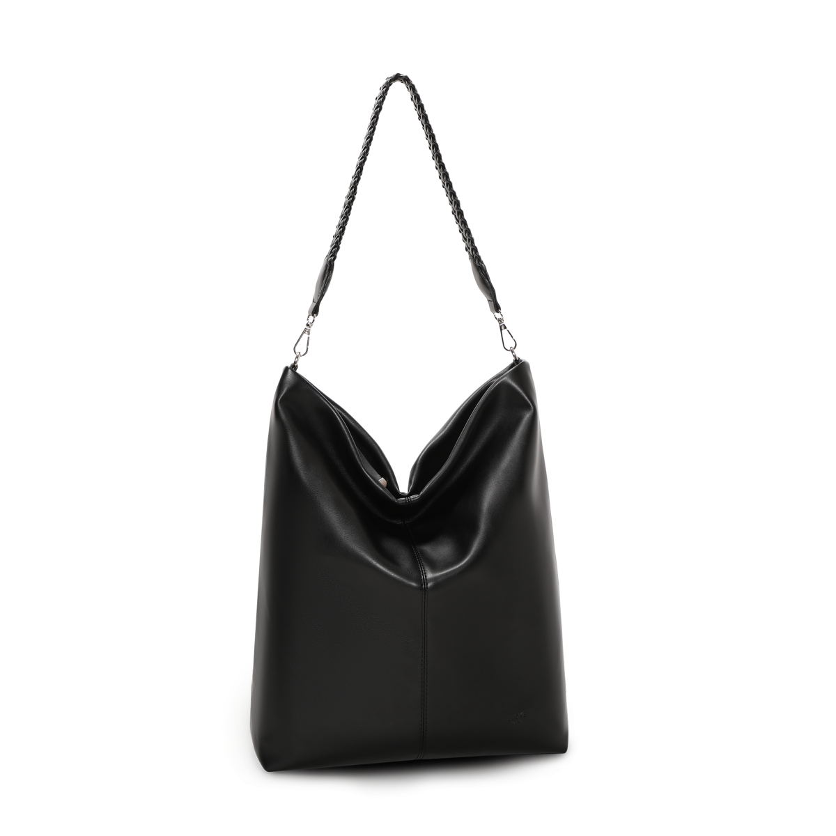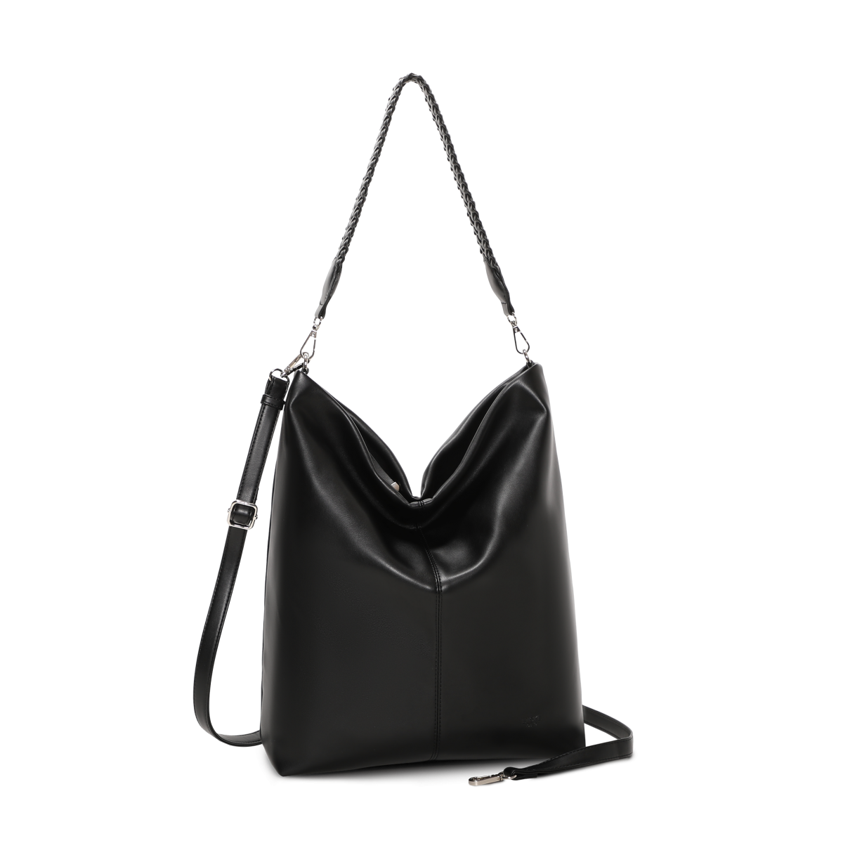 Väskan erbjuder flera bärmöjligheter tack vare den flätade korta axelremmen och den långa avtagbara remmen. Du kan bära den i handen, på axeln eller som crossbody. De silverfärgade metalldetaljerna och den dekorativa blixtlåsdragaren ger en modern finish som kompletterar den övergripande eleganta designen.
