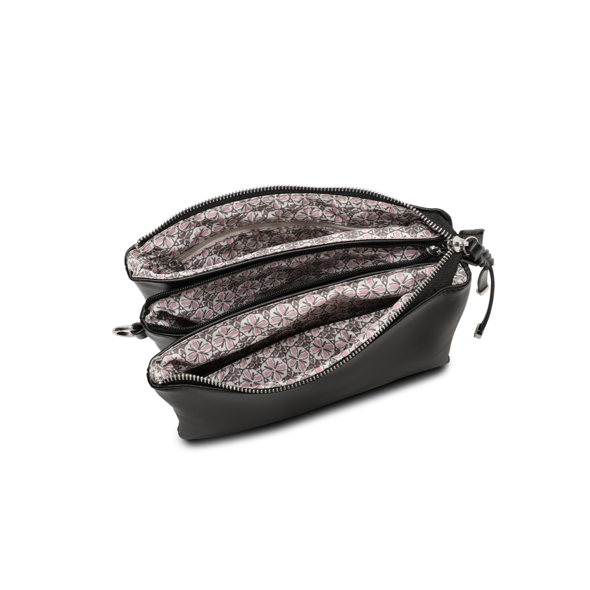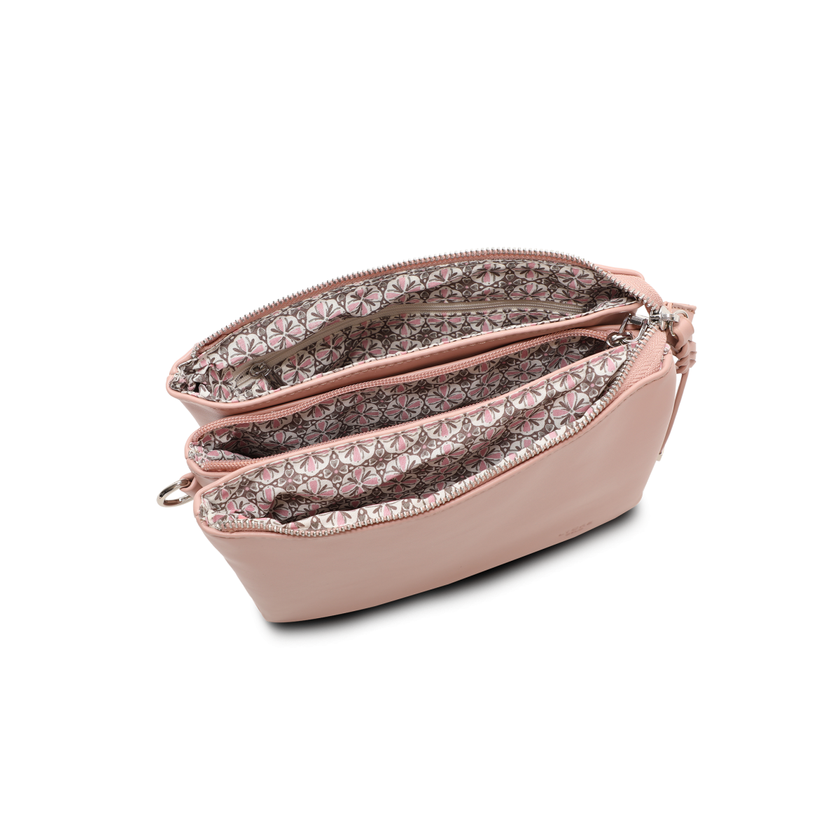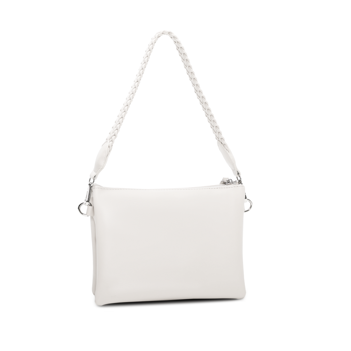 Väskan har tre huvudfack, vilket gör det enkelt att hålla ordning på dina tillhörigheter. Mittenfacket är utrustat med en dragkedja för extra säkerhet. Den flätade korta remmen ger en unik touch, medan den avtagbara och justerbara remmen erbjuder full flexibilitet i användningen.