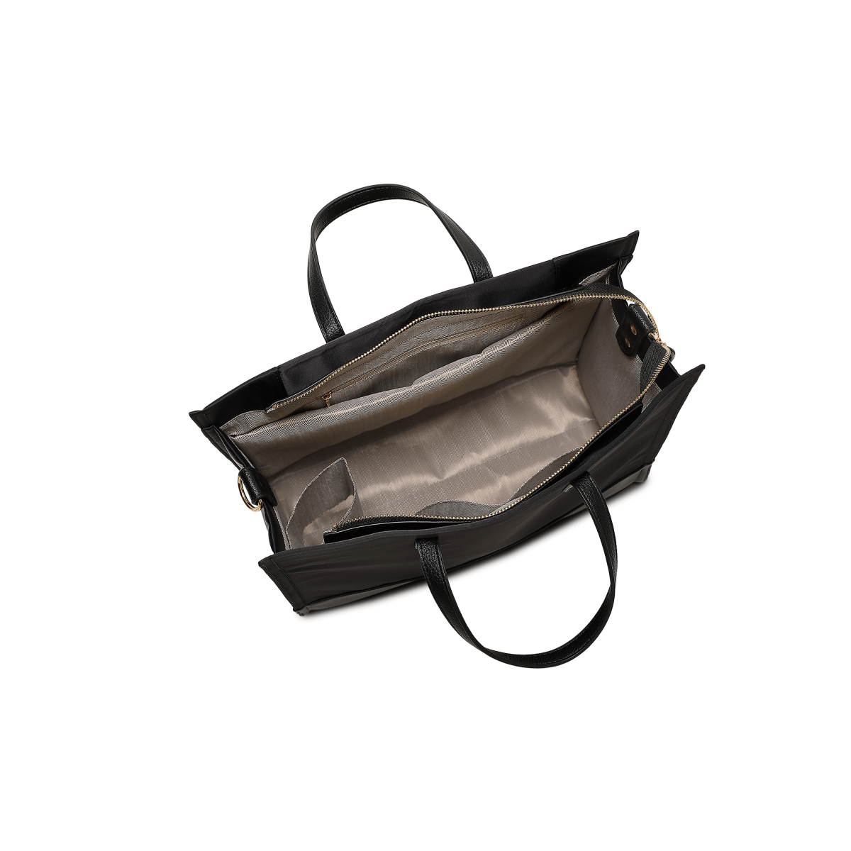Denna handväska i modellen Grorud från Lycke Oslo är skapad för dig som vill kombinera stil och funktion i vardagen. Tillverkad i stryktålig nylon med mjuka detaljer i veganvänlig skinnimitation, ger väskan ett exklusivt och professionellt uttryck. Den är perfekt för arbete, pendling och resor, tack vare dess eleganta och praktiska design.