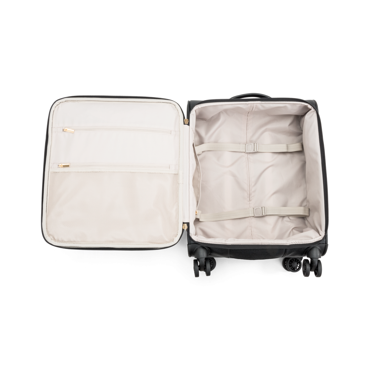 Med integrerat TSA-kodlås är dina tillhörigheter säkra, medan de fyra 360° roterande hjulen ger optimal stabilitet och enkel navigering genom flygplatser och trånga utrymmen.