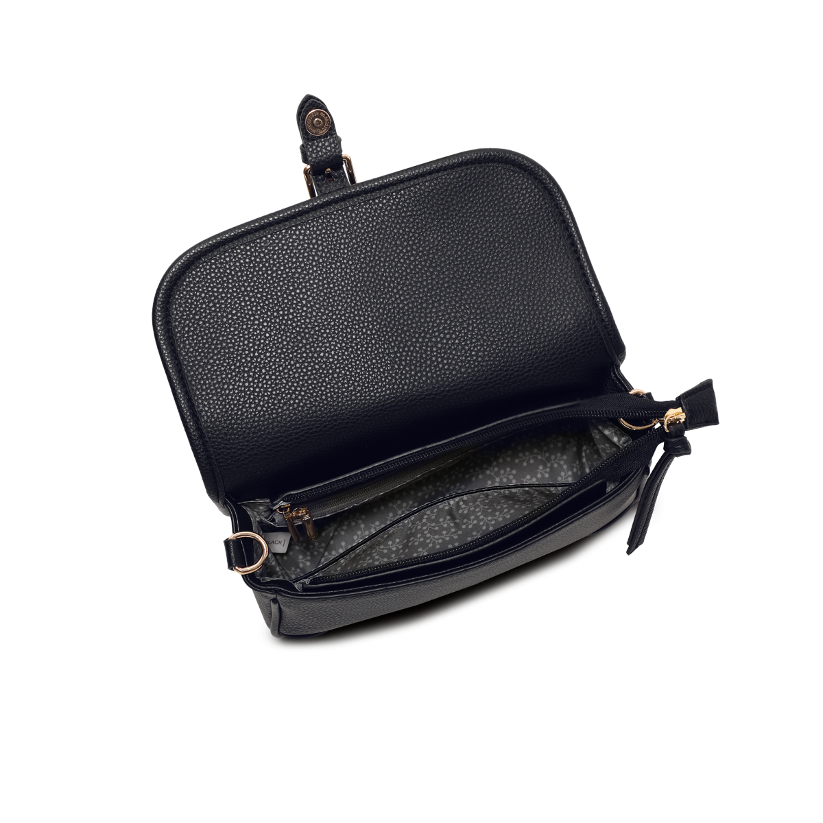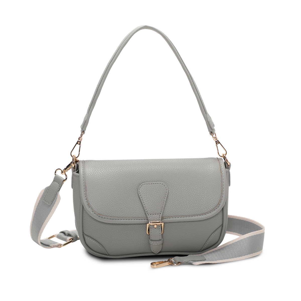 Väskan har två avtagbara axelremmar, en kort i matchande material och en längre i textil, vilket gör den både mångsidig och elegant. Den är perfekt för en dag på stan eller en middag på kvällen. Guldfärgade metalldetaljer ger väskan en exklusiv finish och förstärker dess sofistikerade utseende.