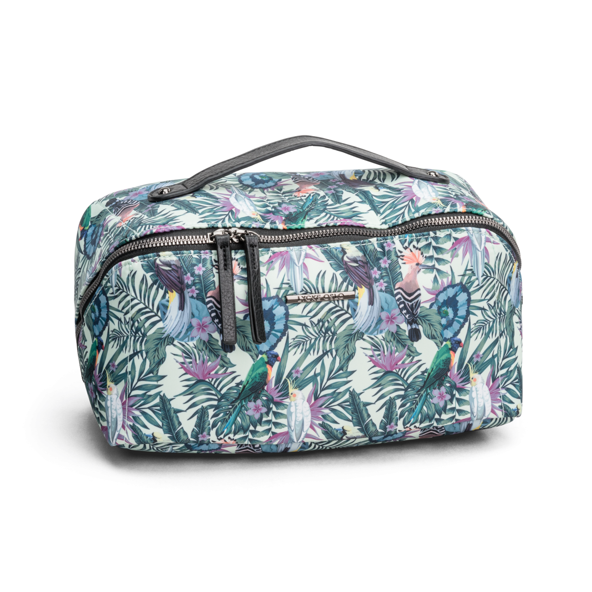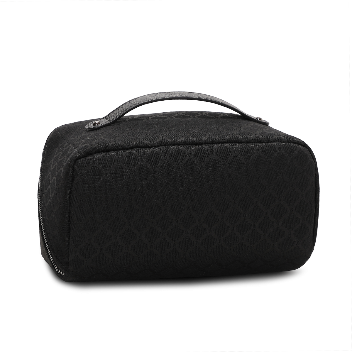 Tillverkad i quiltad, veganvänlig skinnimitation, kombinerar denna necessär lyx och djurvänlighet. De eleganta gunmetal-detaljerna ger ett sofistikerat intryck. Med ett praktiskt bärhandtag upptill är den enkel att ta med sig, oavsett vart du är på väg.