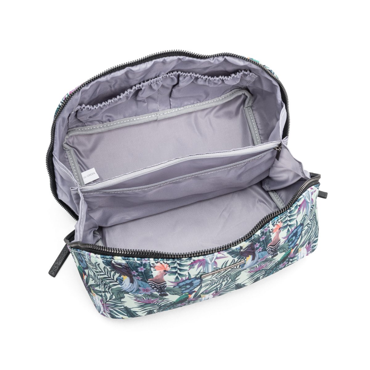 Denna necessär står stadigt på plant underlag, vilket gör den perfekt för användning i badrum eller på resan. Med flera inre fack, inklusive en blixtlåsficka och fyra meshfickor, kan du enkelt organisera och separera dina produkter. Det genomtänkta inre gör det enkelt att hålla ordning på dina tillhörigheter.