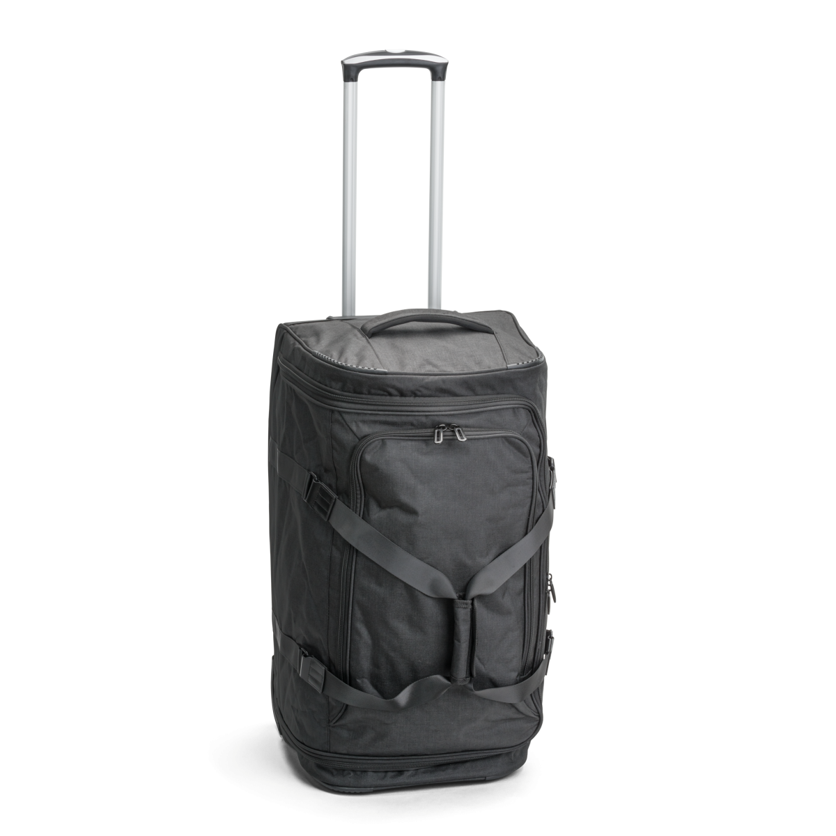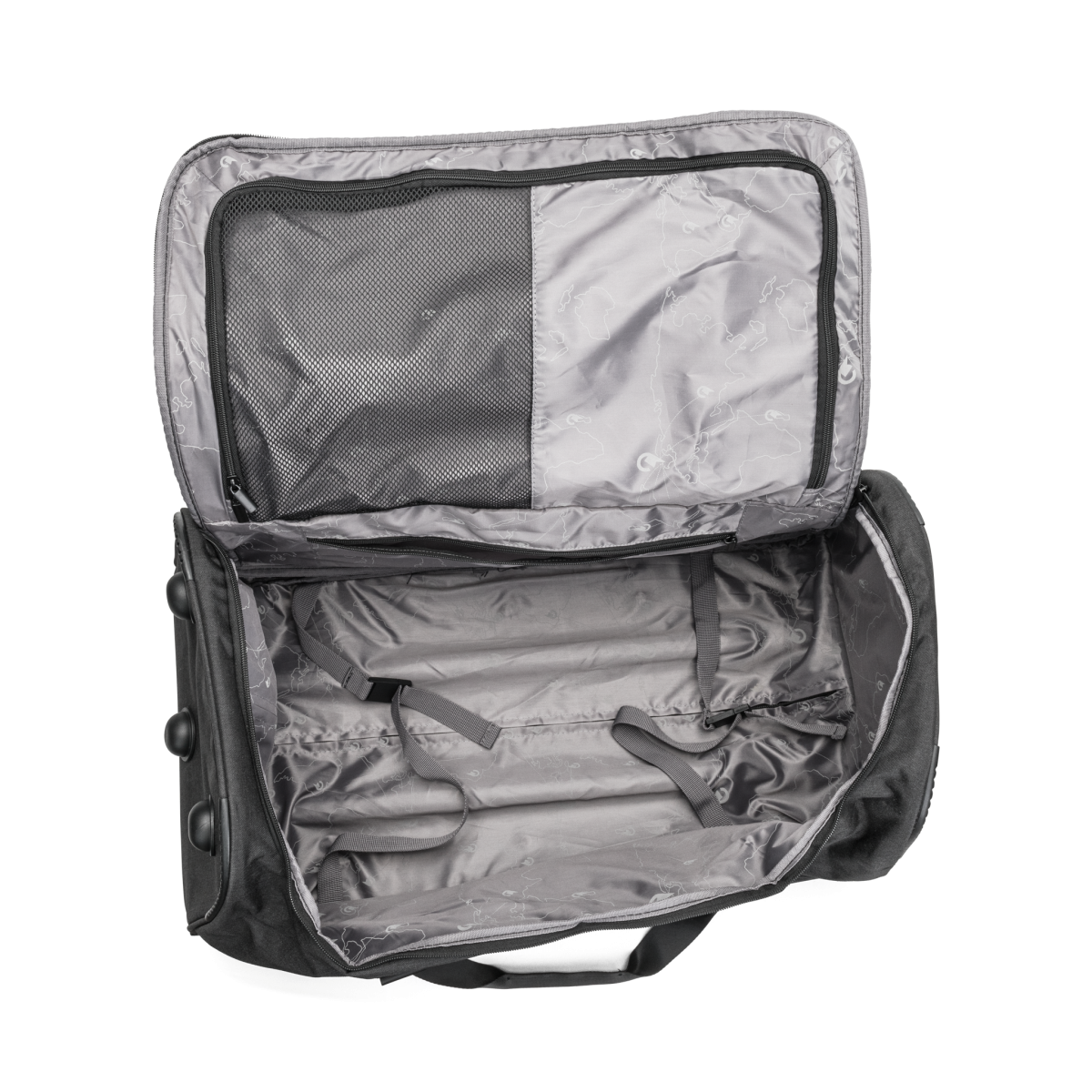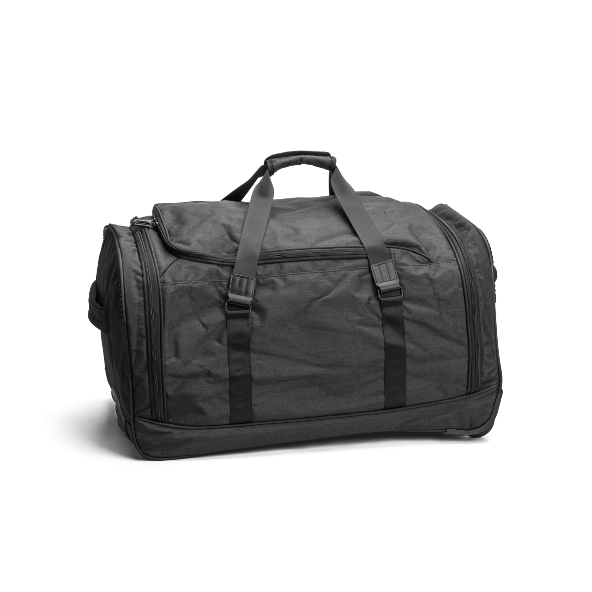 Förutom hjulen har duffelbagen bärhandtag både upptill och på kortsidan, vilket underlättar vid in- och urlastning. Plastfötter på undersidan ger stabilitet när väskan står upprätt. Den slitstarka konstruktionen gör den till en pålitlig följeslagare för alla typer av resor.