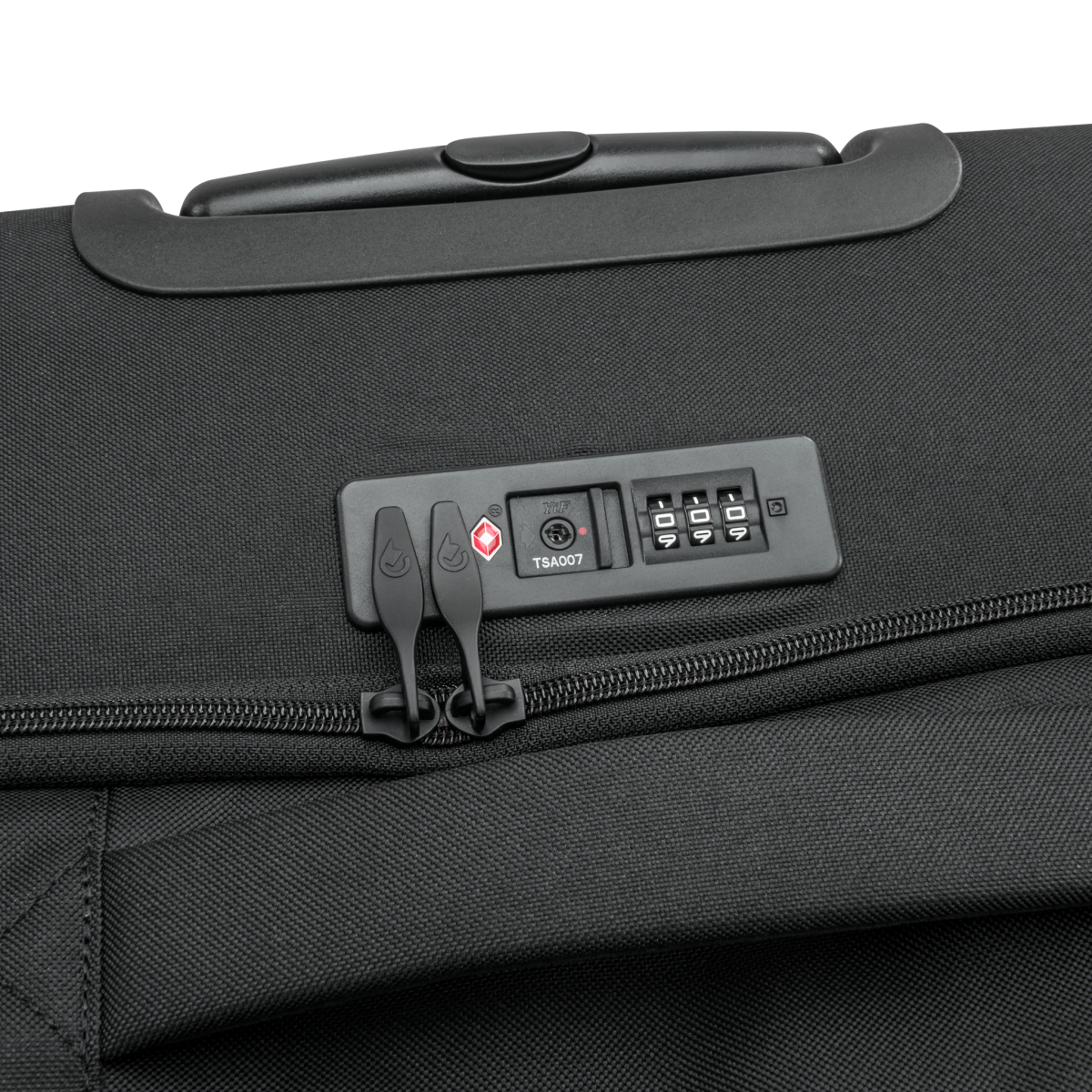 Denna produkt är utrustad med ett godkänt TSA-lås där du kan enkelt välja en personlig tresiffrig kod med hjälp av de instruktioner som följer med väskan.