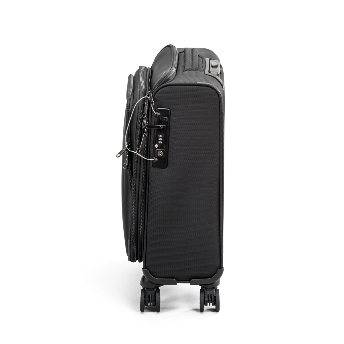 Denna kabinväska är utrustad med tystgående premiumhjul från Hinomoto, vilket ger en silkeslen rullupplevelse i alla riktningar. Det ergonomiska teleskophandtaget gör det enkelt att transportera väskan genom flygplatser och hotell. Med en expanderbar kapacitet erbjuder den extra flexibilitet för dina packbehov.