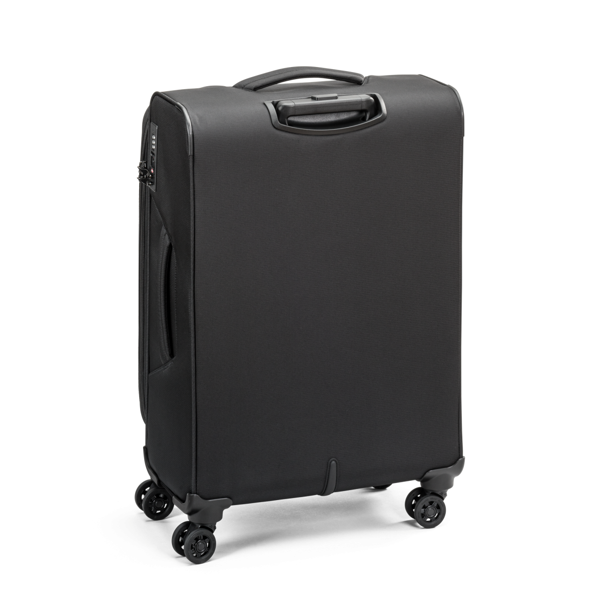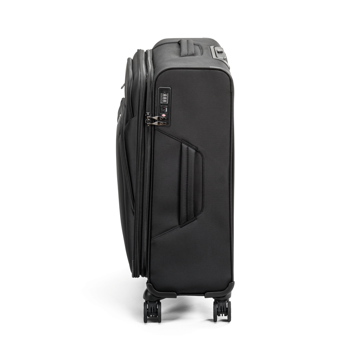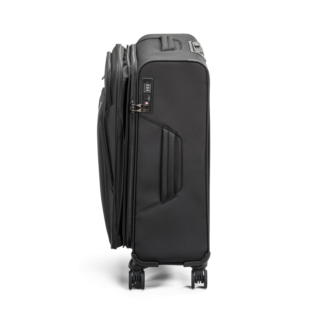 Denna resväska är utrustad med fyra tystgående Hinomoto-hjul, vilket ger en smidig och följsam rullning. Det ergonomiska teleskophandtaget gör det enkelt att manövrera väskan, medan det TSA-godkända låset säkerställer trygghet under internationella resor. Den expanderbara dragkedjan med låsbar funktion ger extra flexibilitet vid behov av mer utrymme.
