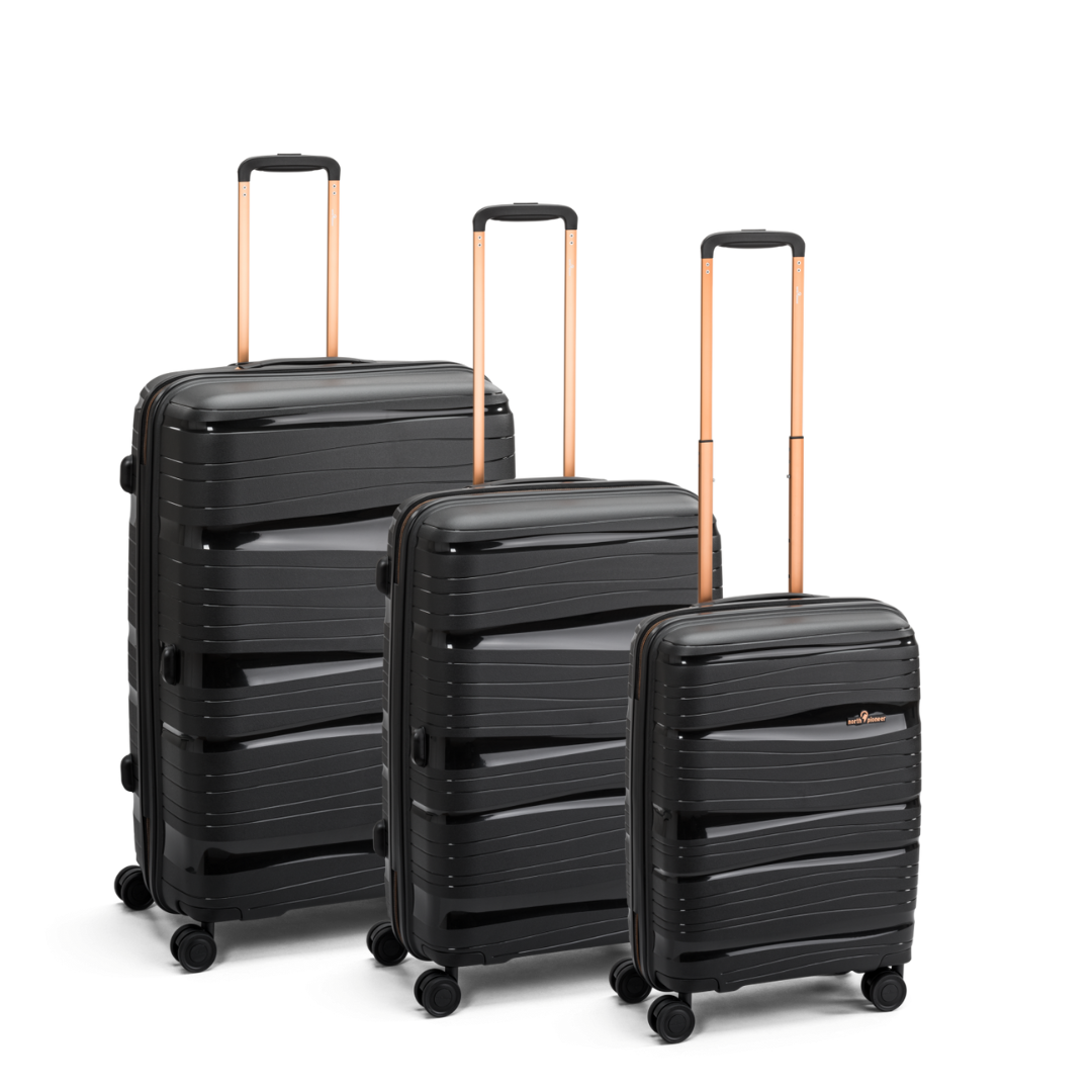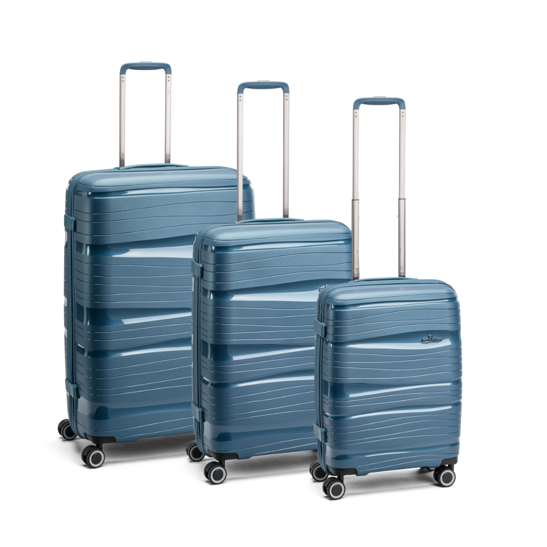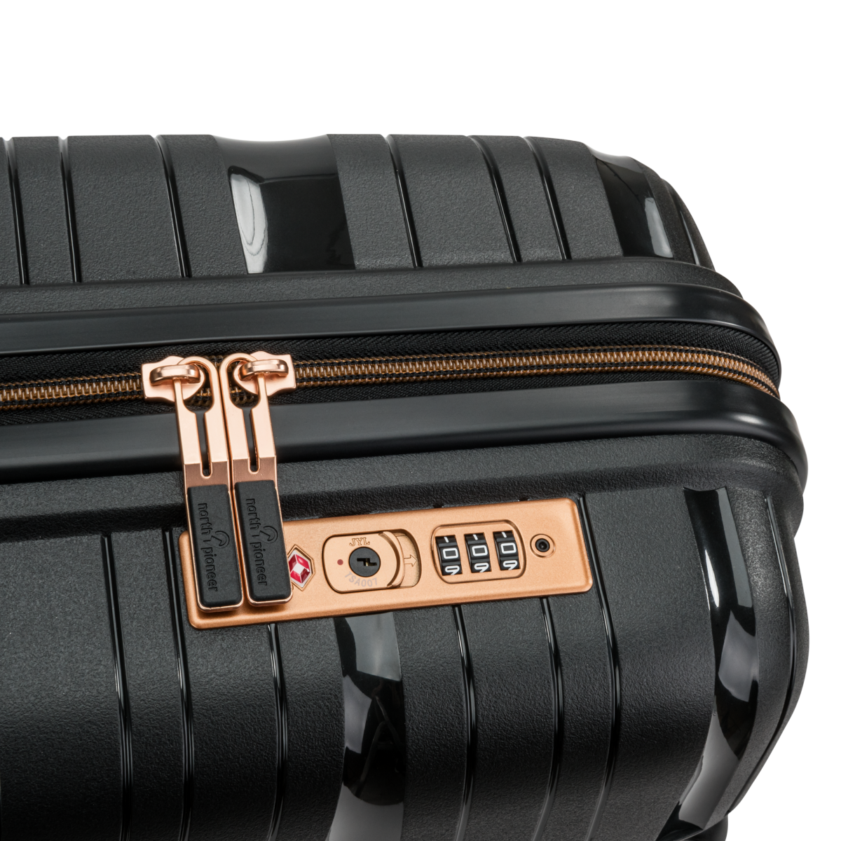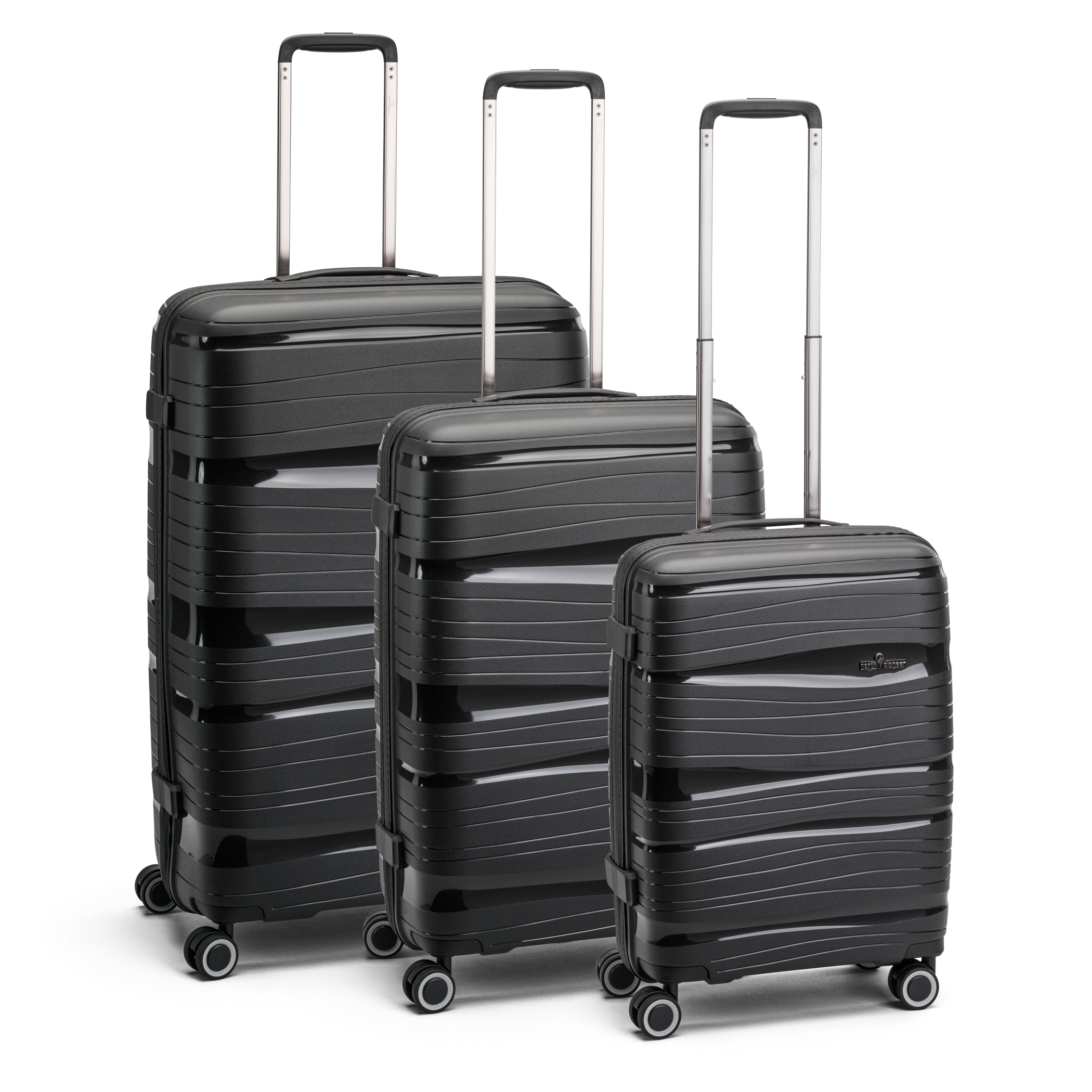 North Pioneer Oslo 3-Set erbjuder tre resväskor tillverkade i tålig polypropylen med förstärkta dragkedjor och ett TSA-godkänt lås för extra säkerhet. Väskorna finns i flera snygga färger som svart, oceanblå, petrolblå, rosa, orange och champagne – välj din favorit för nästa äventyr!