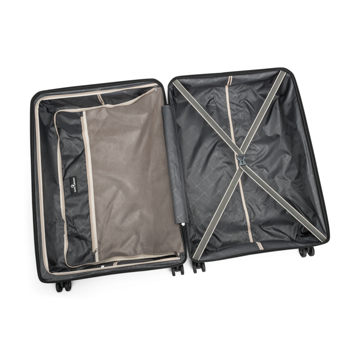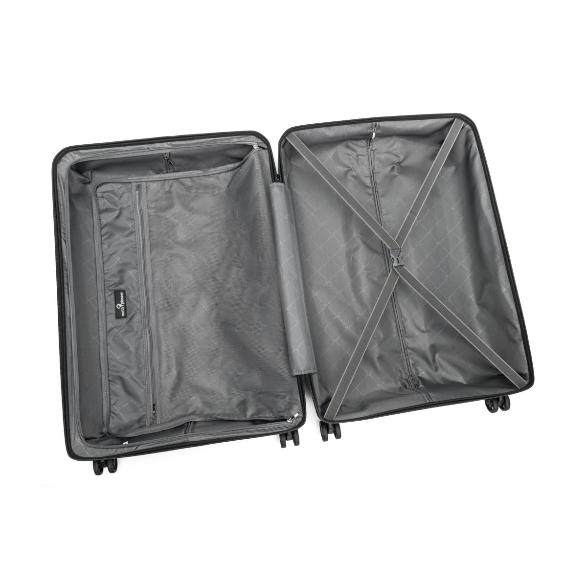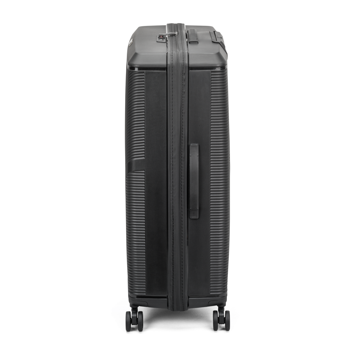 Denna stora resväska från North Pioneers PRG-serie är designad för att vara både lätt och robust. Med fokus på enkel transport och hållbarhet är den ett utmärkt val för den som reser ofta. Den stilrena, räfflade polypropylenytan ger extra stötskydd och bidrar till väskans moderna utseende.