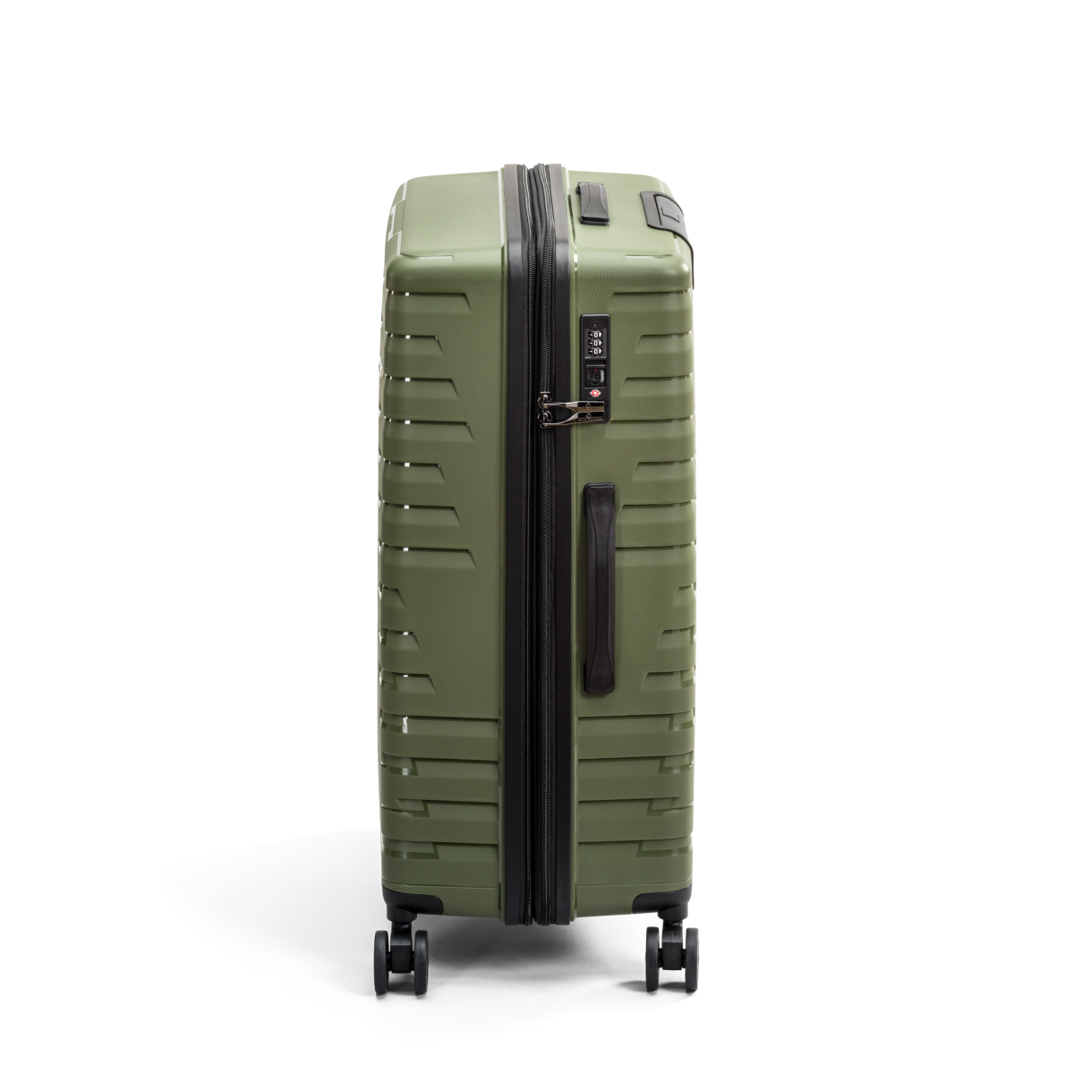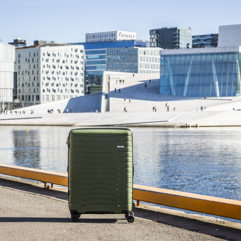 Tromsø-serien från North Pioneer erbjuder en perfekt kombination av slitstyrka och modern design. Inspirerad av resor och döpt efter Tromsø Airport, är denna serie skapad för den medvetna resenären. Den mellanstora resväskan är tillverkad i tålig polypropylen med en räfflad yta som skyddar mot stötar och repor.