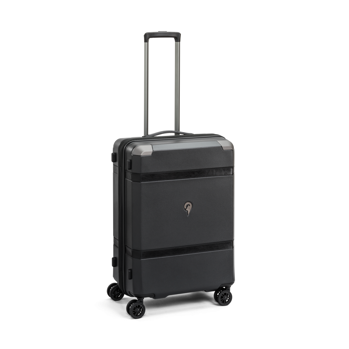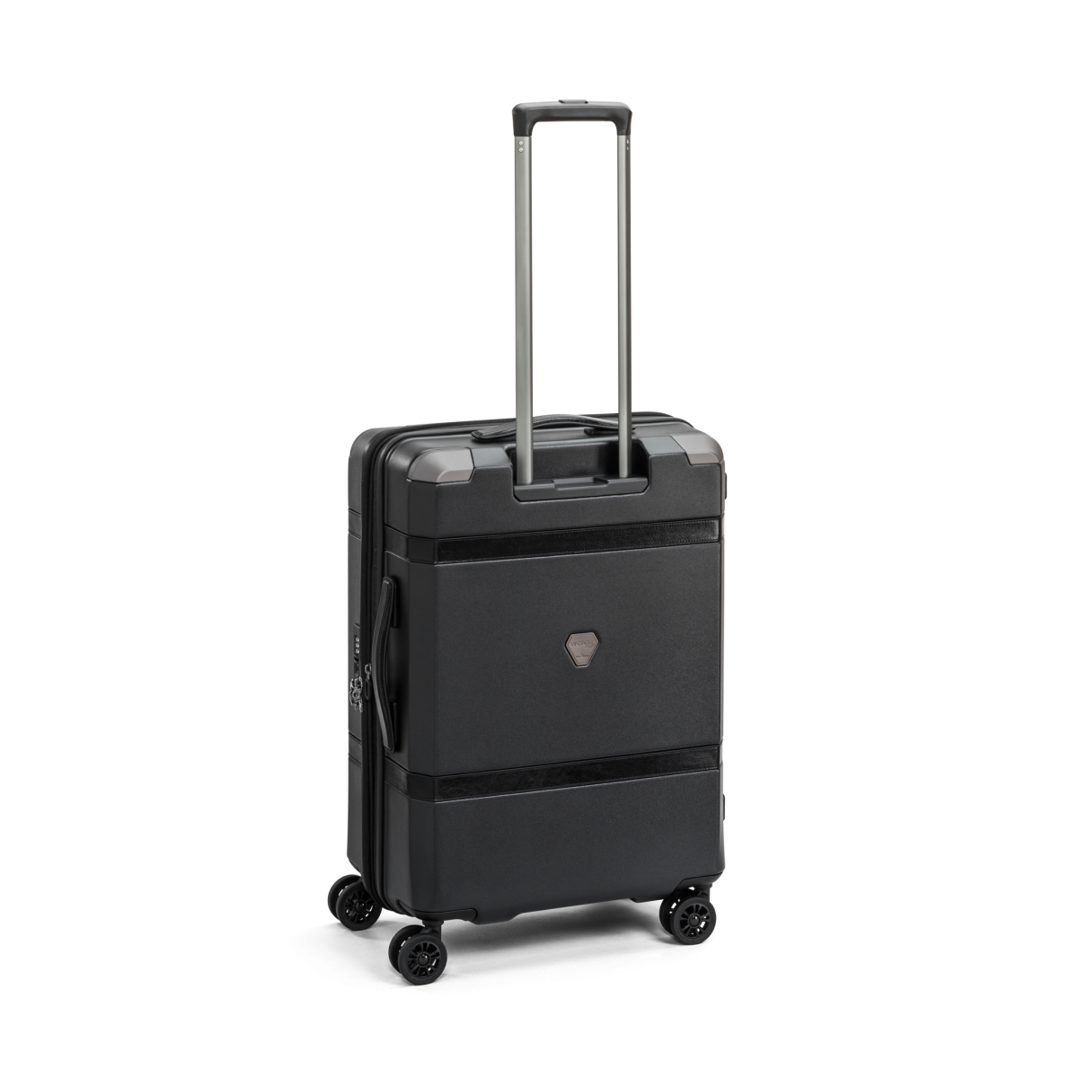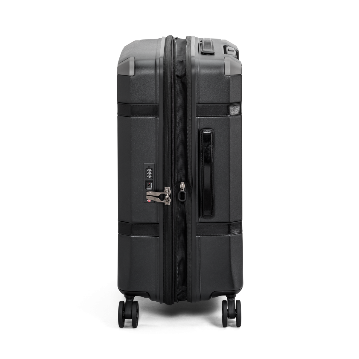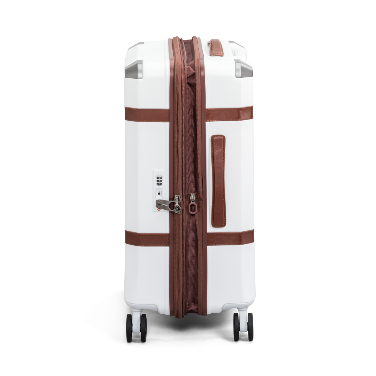 Invändigt erbjuder väskan en rymlig layout med kompressionspaneler, elastiska packband och avdelare, vilket underlättar organiserad packning. Det lyxiga peachskinnfodret ger en extra touch av elegans. Ett handtag i karbon-look på ovansidan adderar ytterligare en stilfull detalj till denna redan exklusiva resväska.