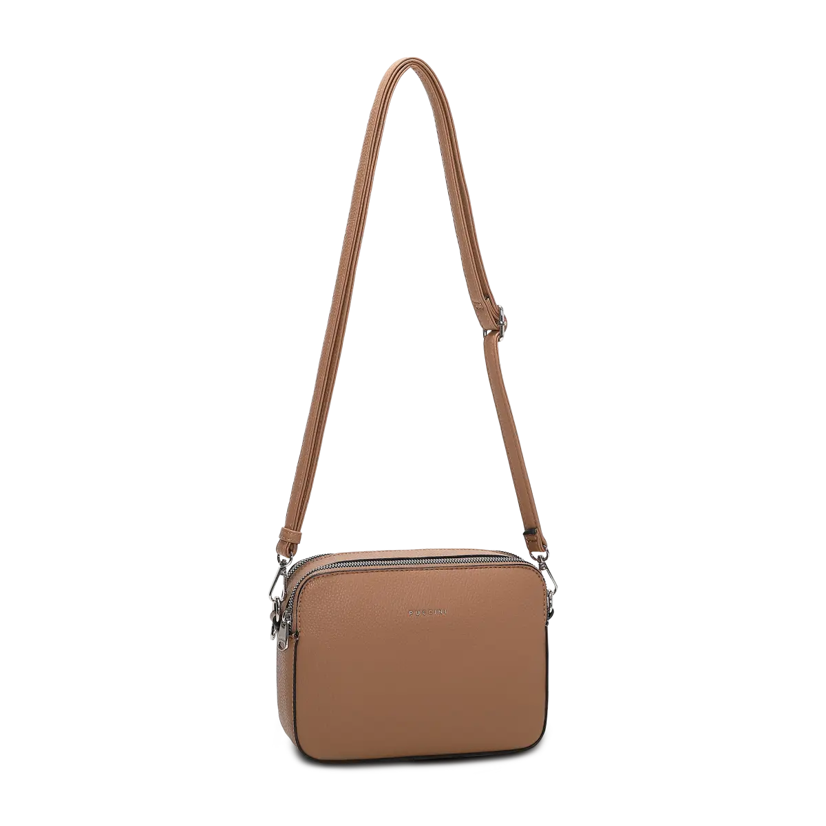 Denna crossoverväska från Puccini är ett utmärkt val för den stilmedvetna. Tillverkad i mjuk, veganvänlig skinnimitation, kombinerar den hållbarhet med en lyxig känsla. De silverfärgade metalldetaljerna förstärker det exklusiva intrycket och gör väskan till en elegant accessoar för alla tillfällen.