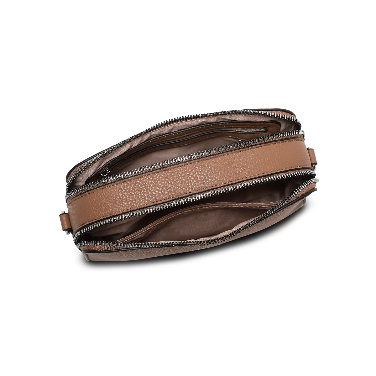 Väskan är inte bara snygg, utan också funktionell. Med två separata huvudfack utrustade med dragkedjor i silverlook, kan du enkelt organisera dina tillhörigheter. Invändigt finns en blixtlåsficka och ett öppet fack, vilket gör det enkelt att förvara mobiltelefon eller andra småprylar. Ett extra blixtlåsförsett fack på baksidan ger säker förvaring för dina viktigaste ägodelar.