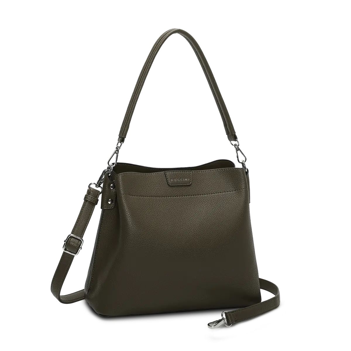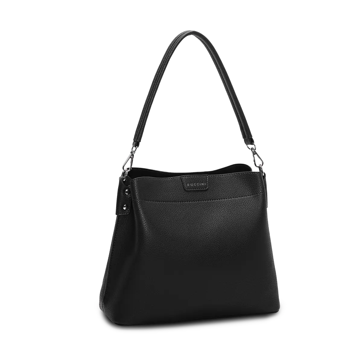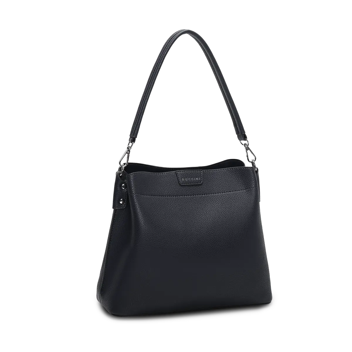 Puccini Anna Crossover 28,5 cm är en stilren och välinredd handväska i större crossovermodell, tillverkad av högkvalitativ skinnimitation med vacker struktur. Den klassiska formen kombineras med moderna detaljer i silver, vilket gör väskan till ett tidlöst val för både vardag och arbete. Den stabila botten med metallfötter gör att väskan står stadigt när du ställer den ifrån dig, och ger samtidigt ett exklusivt intryck.