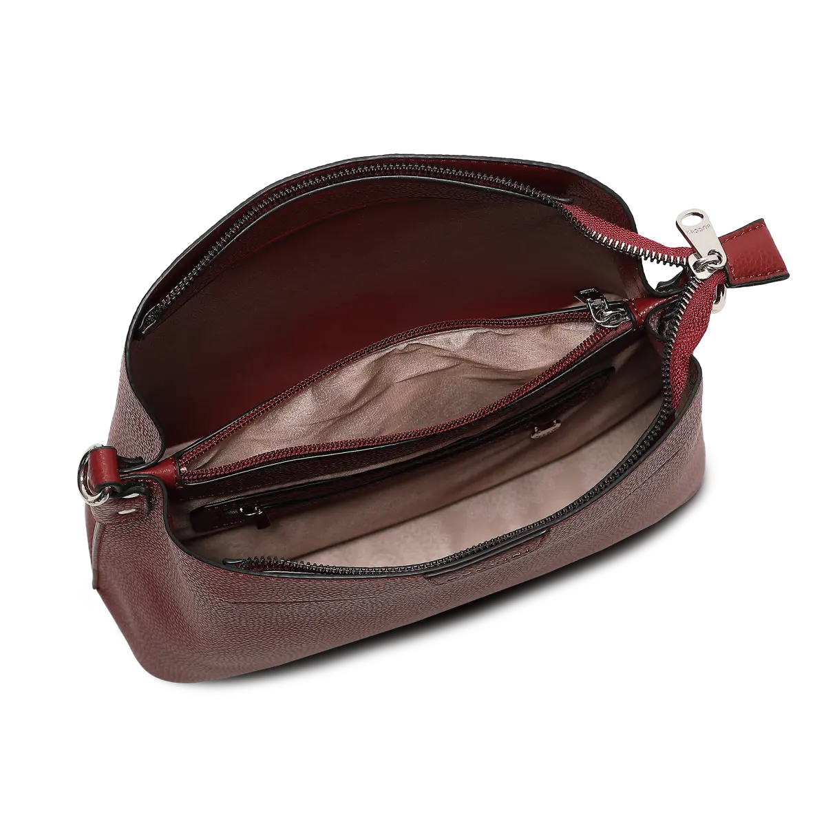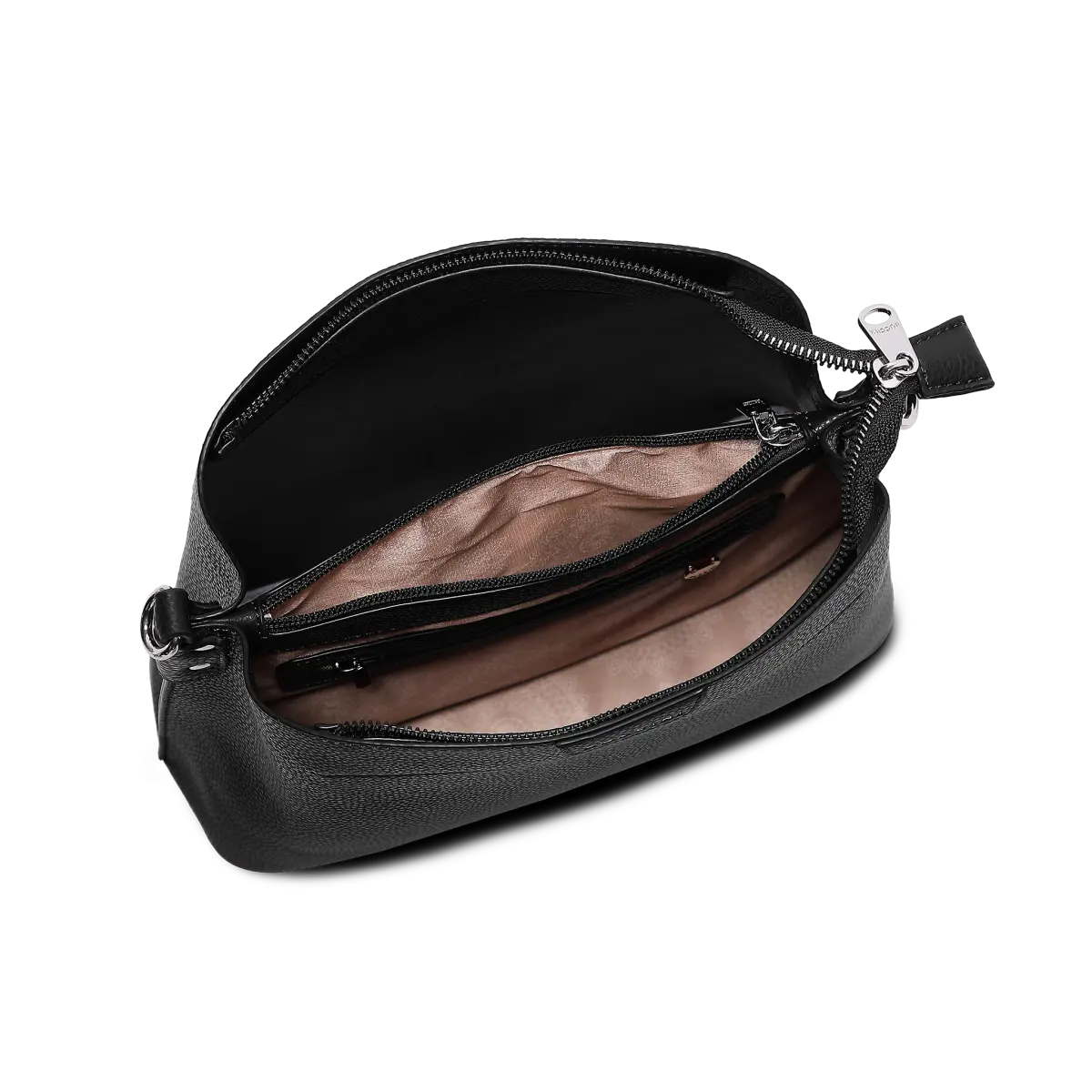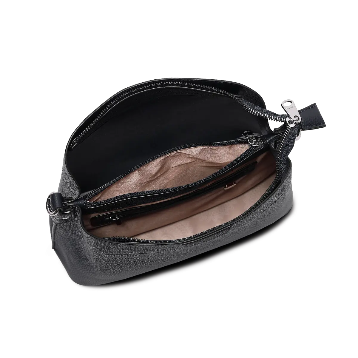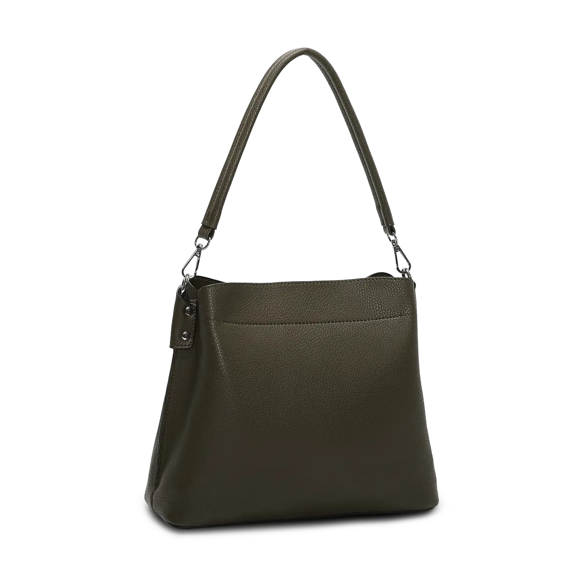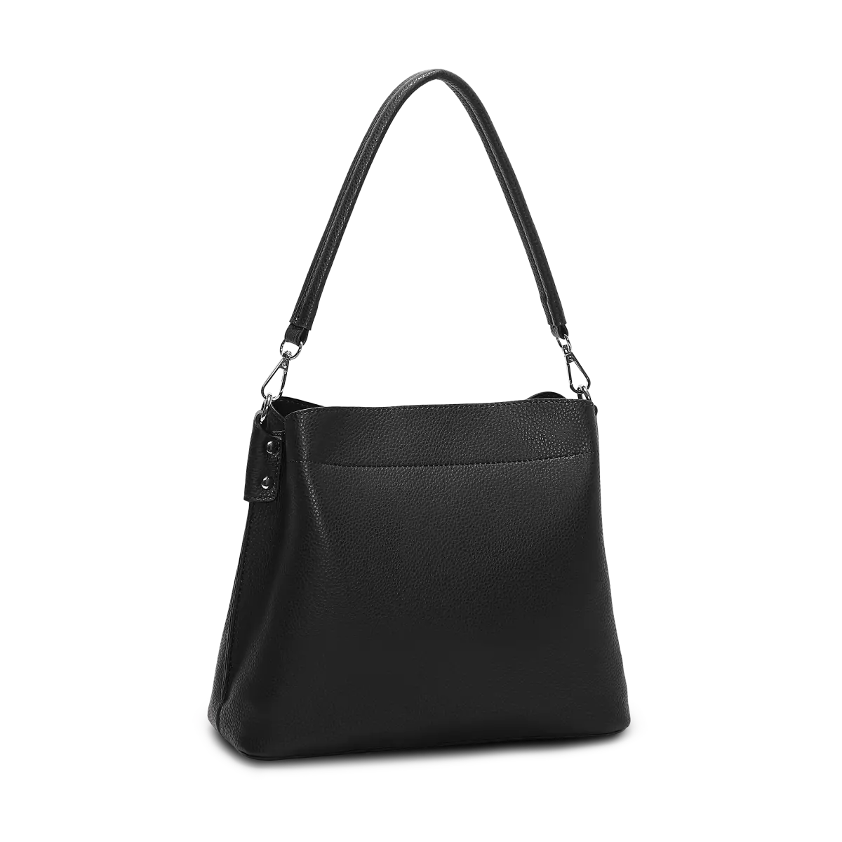 Puccini Anna Crossover kan bäras på flera sätt tack vare sina två medföljande remmar. De korta handtagen med 23 cm dropplängd gör väskan bekväm att bära i handen eller på armen, medan den avtagbara och justerbara axelremmen (36–67 cm) ger flexibilitet att använda den som crossbody. Tillverkad i slitstark, veganvänlig PU kombinerar väskan elegans, hållbarhet och ett ansvarsfullt materialval som håller länge.