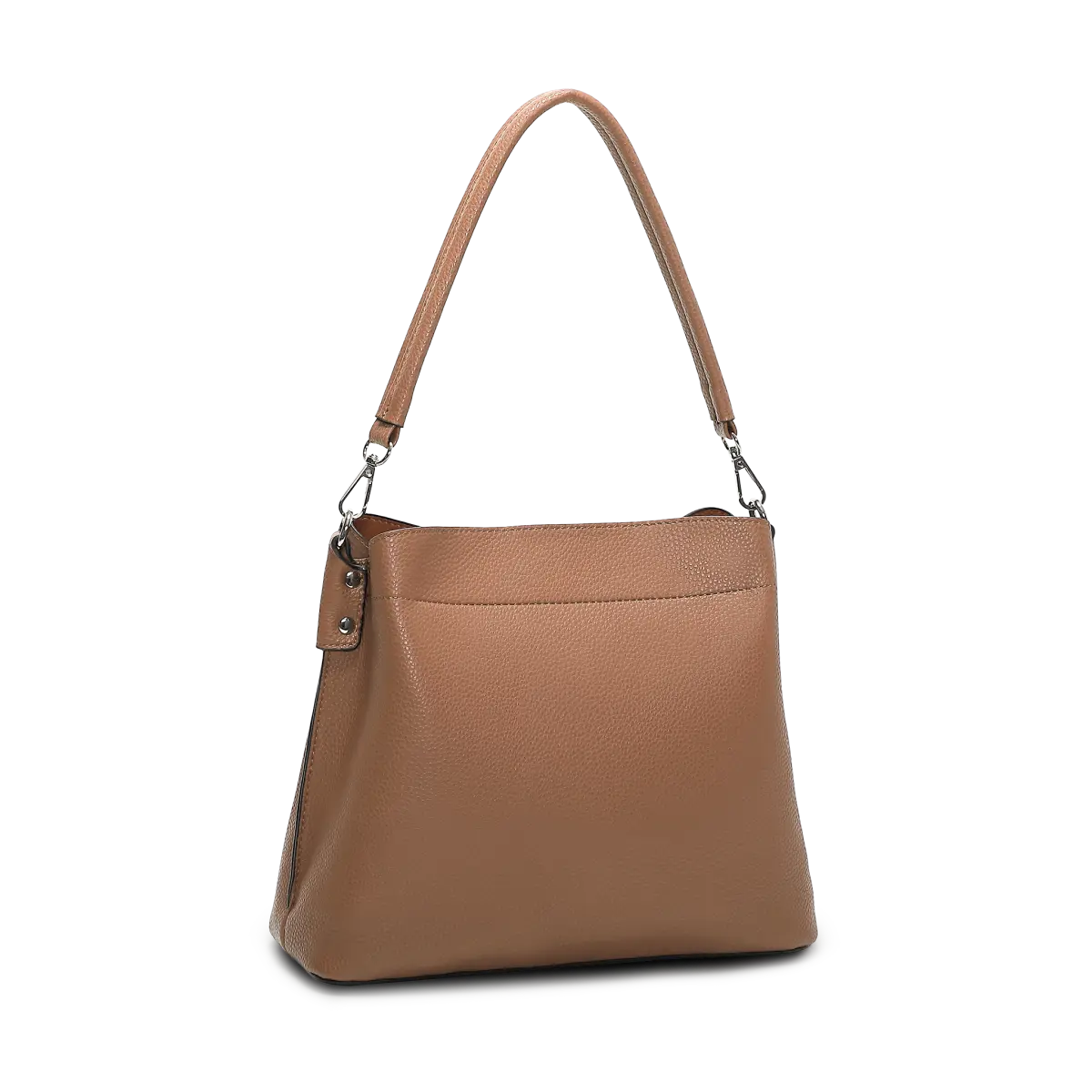 Väskan är smart organiserad med ett huvudfack som stängs med dragkedja, samt ett mittfack med blixtlås för att hålla ordning bland dina tillhörigheter. Dessutom finns ett blixtlåsförsett sidofack och ett öppet fack för mobil, nycklar eller andra småsaker. Den genomtänkta layouten gör väskan både praktisk och funktionell – perfekt för dig som vill ha stil utan att kompromissa med användbarhet.
