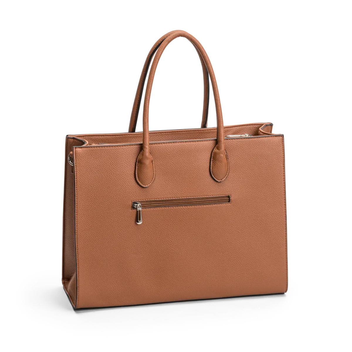 Tillverkad av högkvalitativ PU som är helt fri från animaliska material. Denna väska kombinerar ett modernt uttryck med etiskt medveten design. Med sina mått på 39 × 14 × 29 cm erbjuder den gott om plats för det du behöver under dagen – från plånbok och sminkväska till dokument och surfplatta.