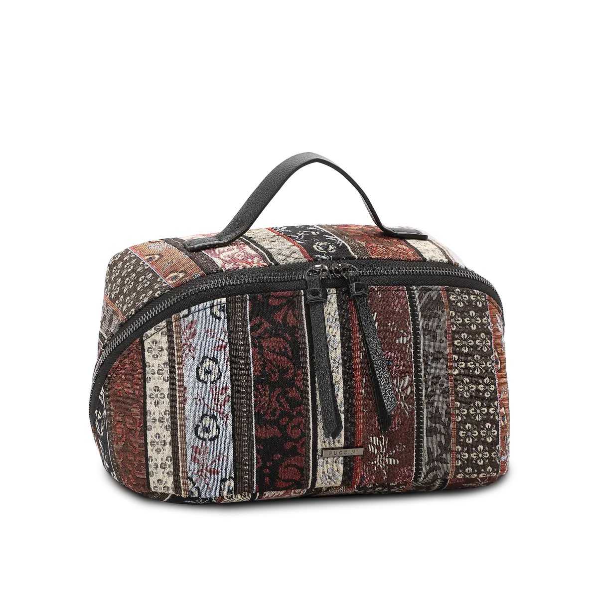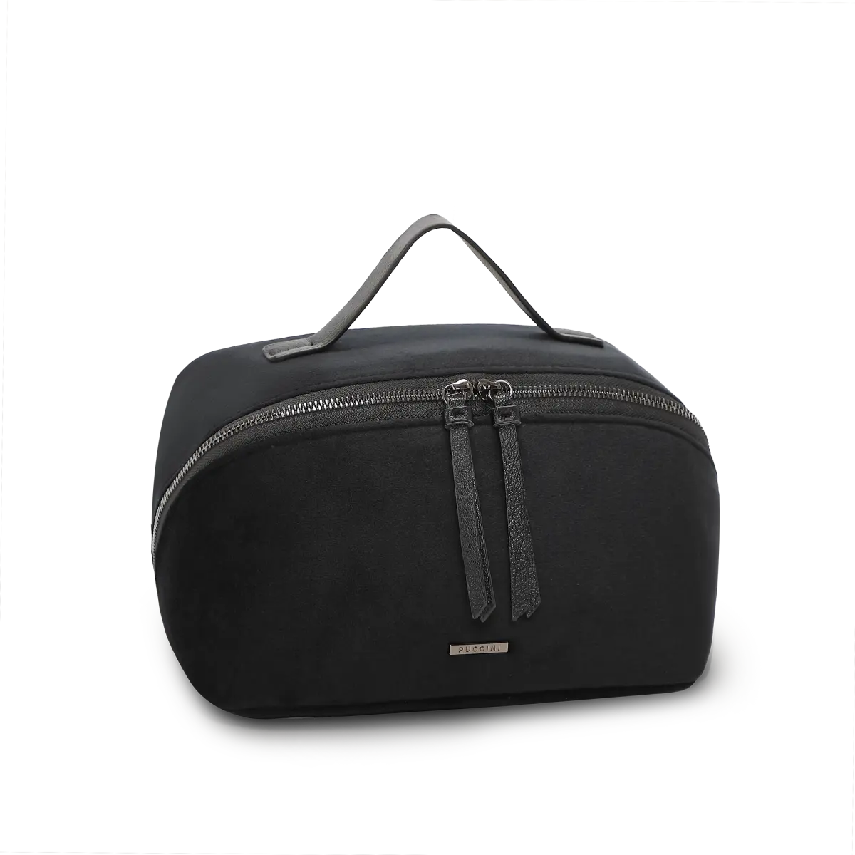 Puccini Cecilia är tillverkad av slitstark textil helt fri från animaliska material. Materialet är lätt, hållbart och enkelt att rengöra. Med sina mått på 26 × 14 × 14 cm erbjuder denna necessär både stil och funktion i ett kompakt format.