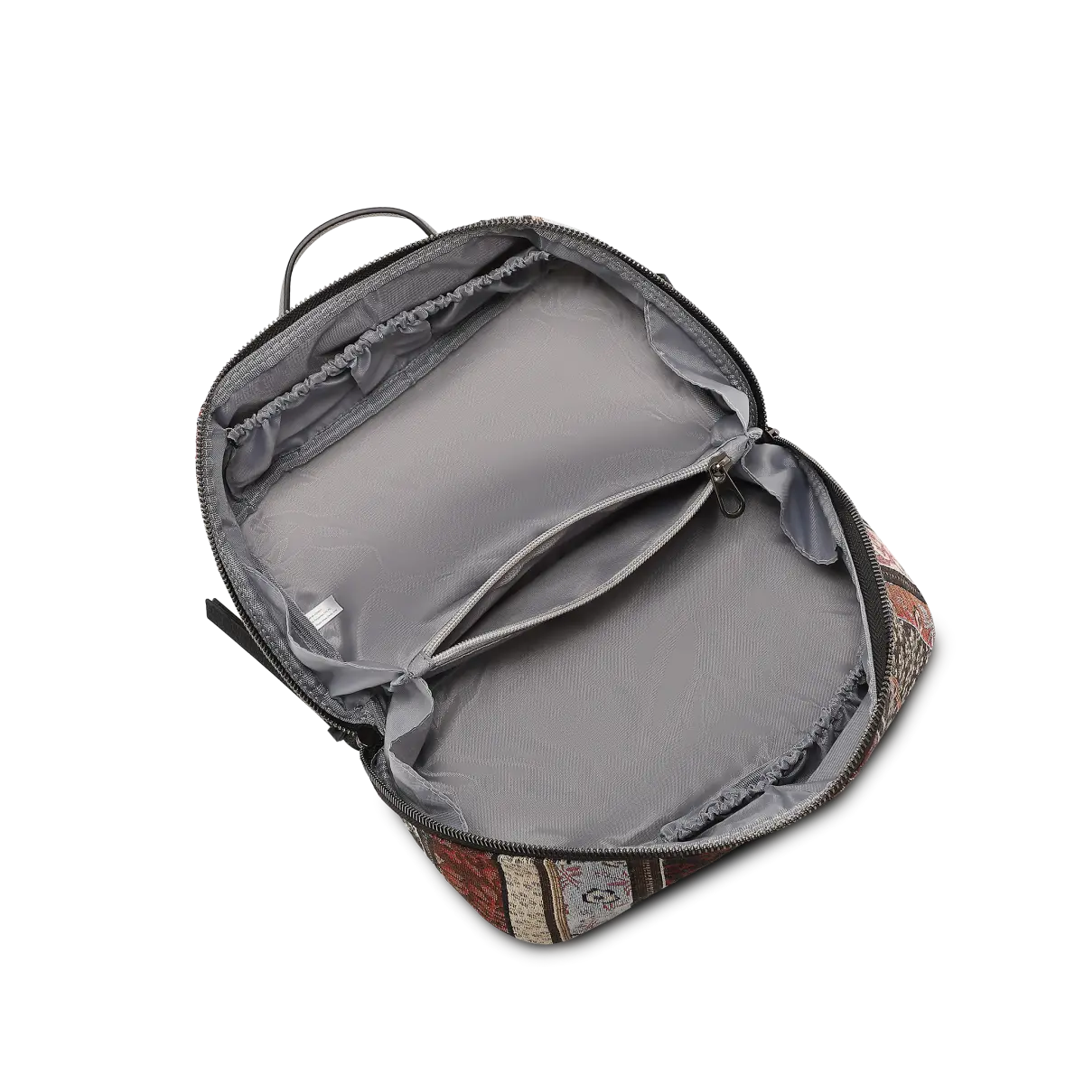 Invändigt finns flera öppna fack som gör det enkelt att hålla ordning på allt från smink och borstar till rakprodukter och hudvård. Det rymliga huvudfacket rymmer både små och stora flaskor, vilket gör väskan flexibel oavsett behov.