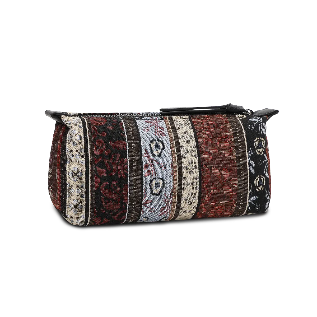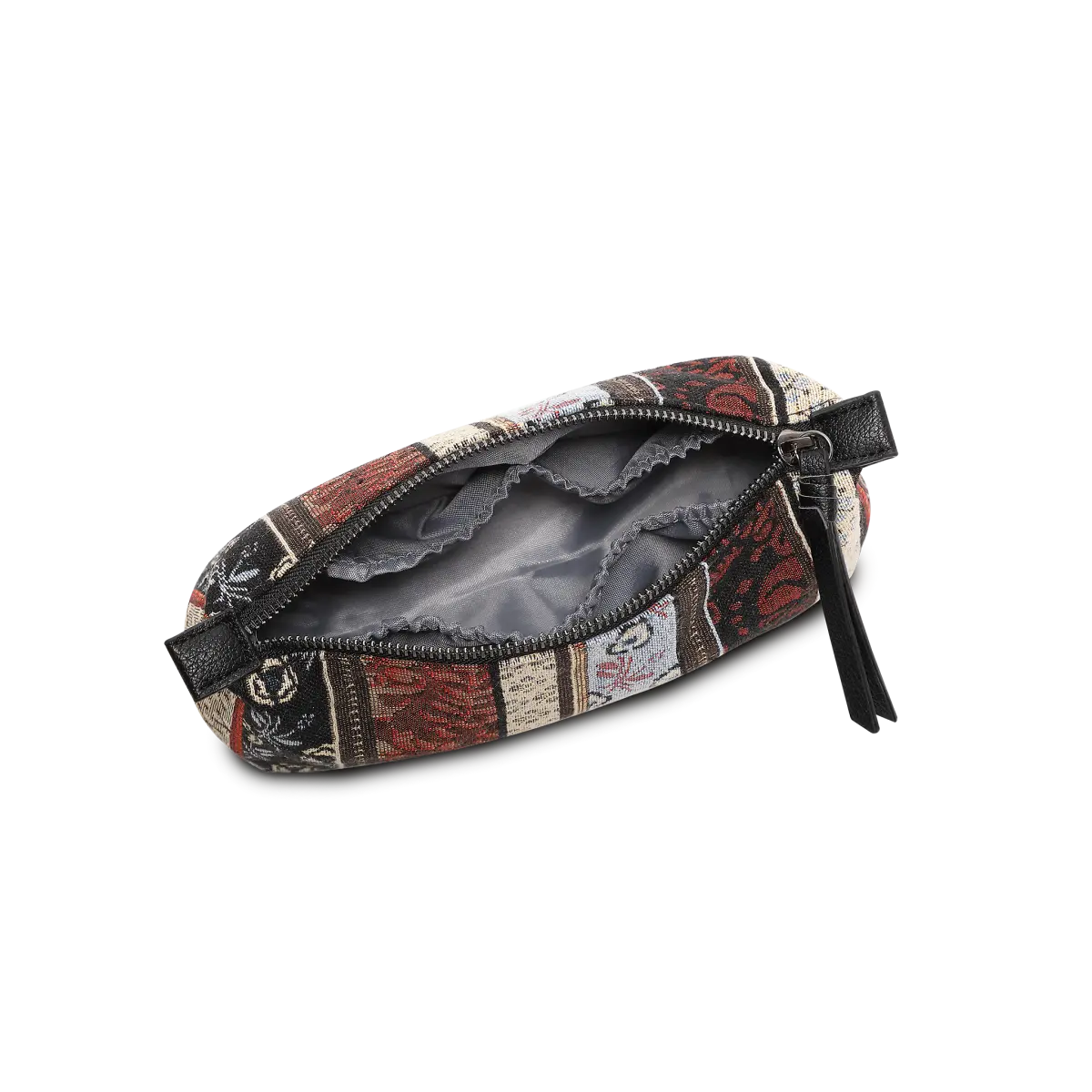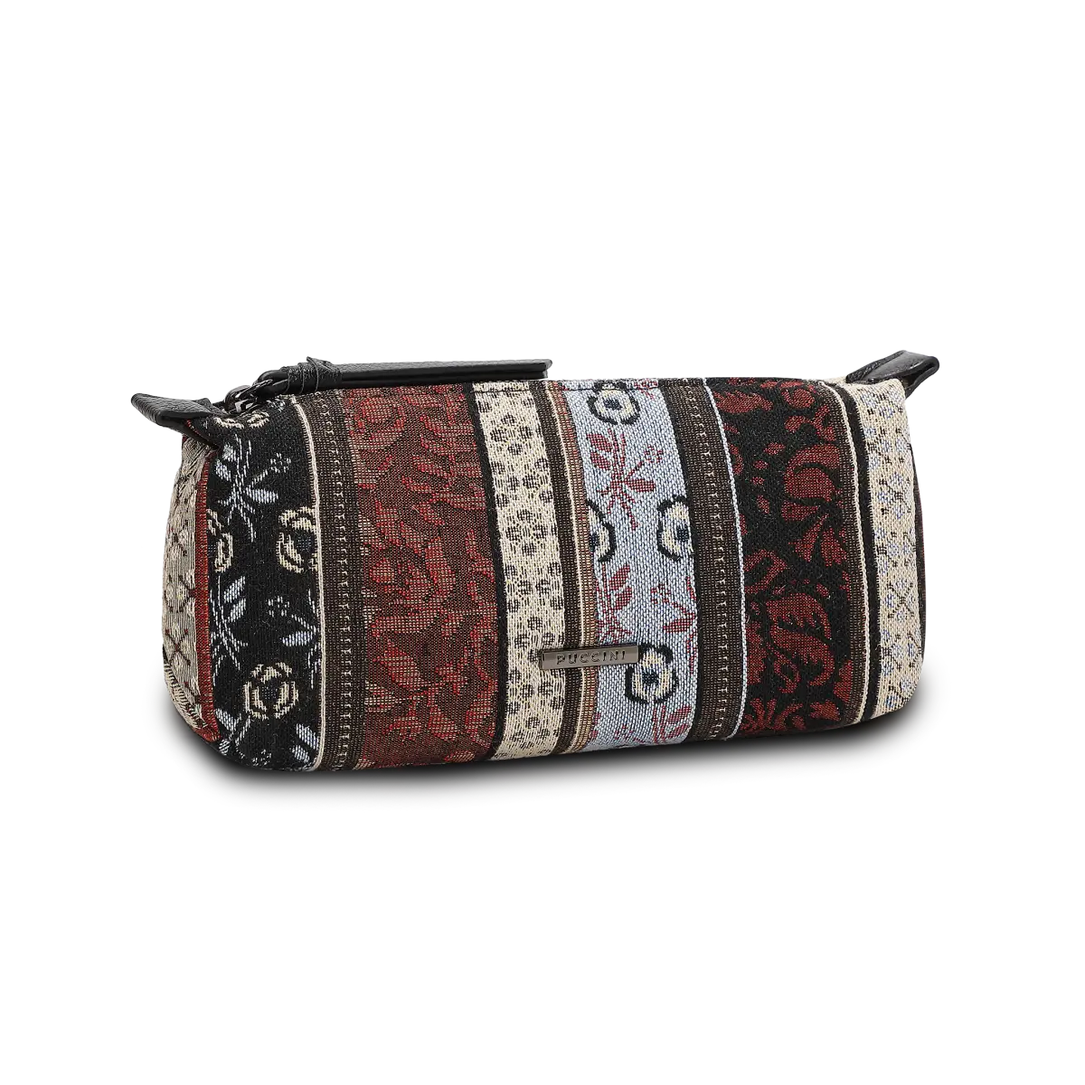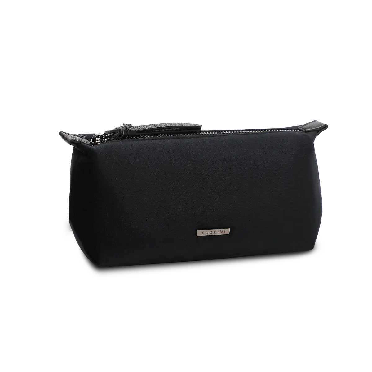 Puccini Cecilia Sminkväska 20,5 cm är en elegant och praktisk sminkväska tillverkad av slitstark textil med mjuk känsla. Den stilrena designen och de mörkgrå gunmetal-detaljerna ger ett sobert och modernt uttryck. En perfekt följeslagare för både resor och vardagsbruk.