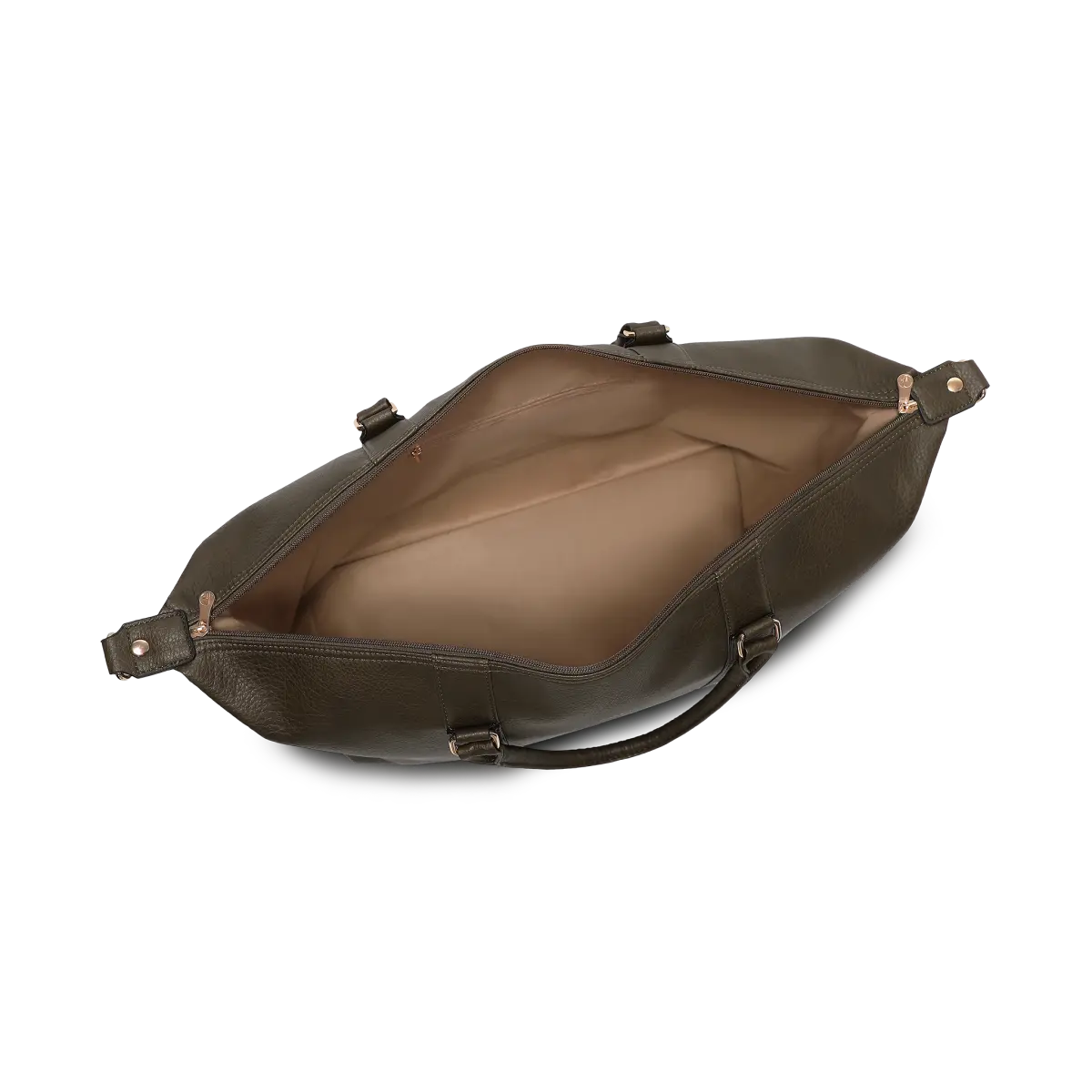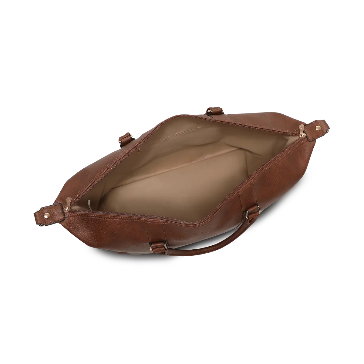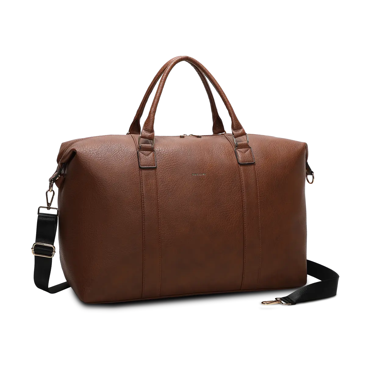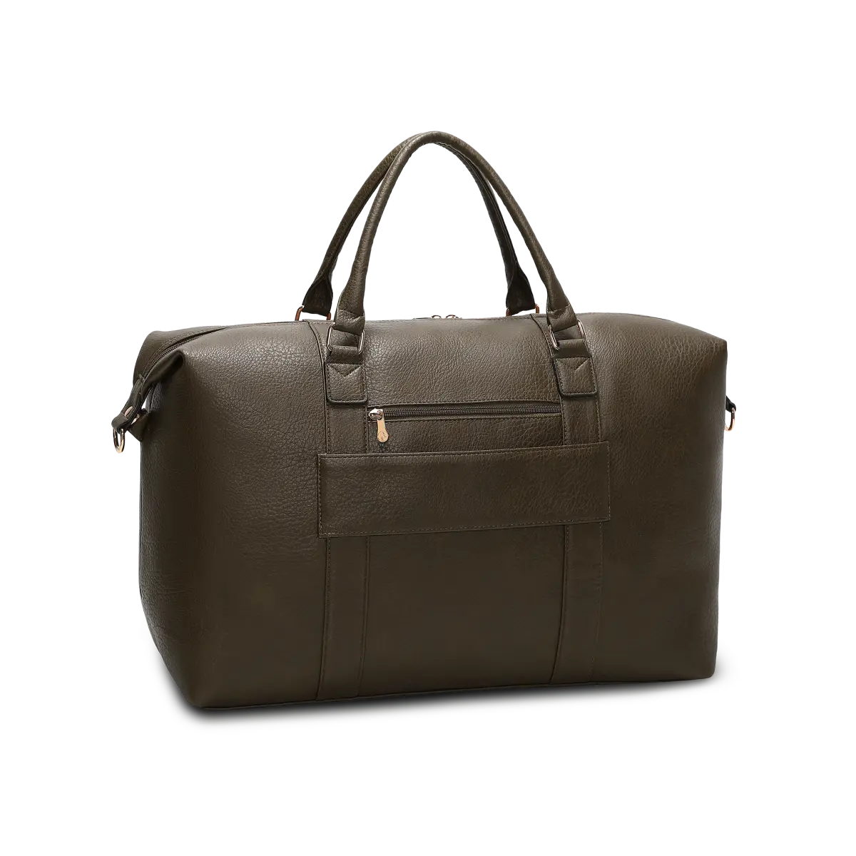 Puccini Disa är en weekendbag som kombinerar rymlighet med en elegant design. Tillverkad i mjuk, veganvänlig skinnimitation, erbjuder denna bag en sofistikerad look med guldfärgade metalldetaljer. Den är idealisk för weekendresor, övernattningar eller som kabinväska, och ger dig möjlighet att packa allt du behöver utan att kompromissa med stilen.