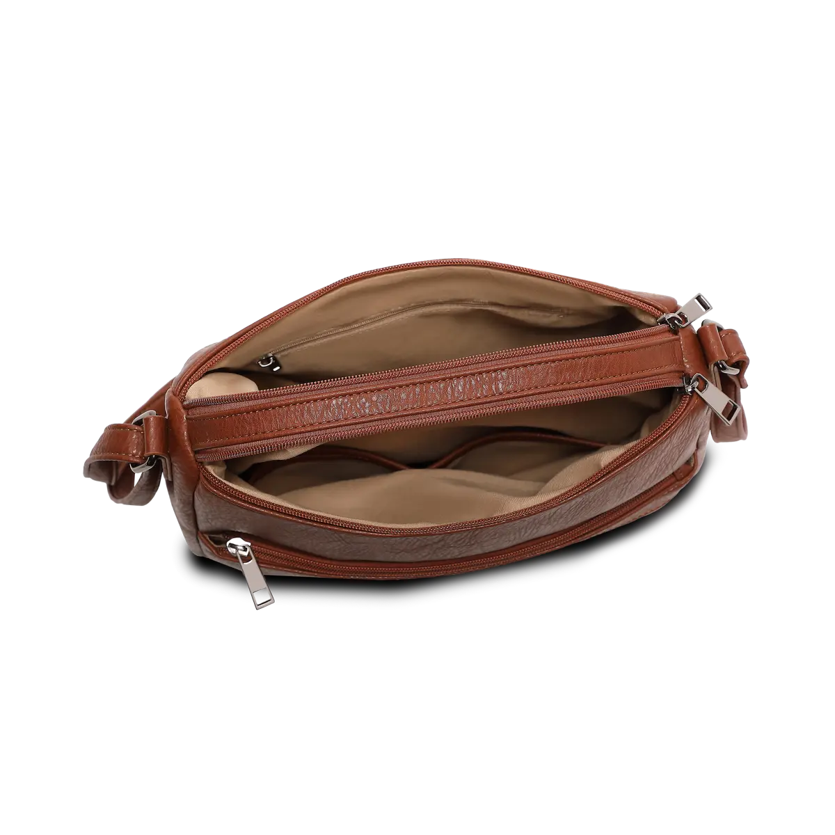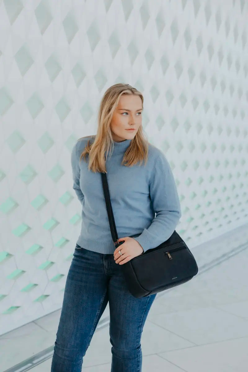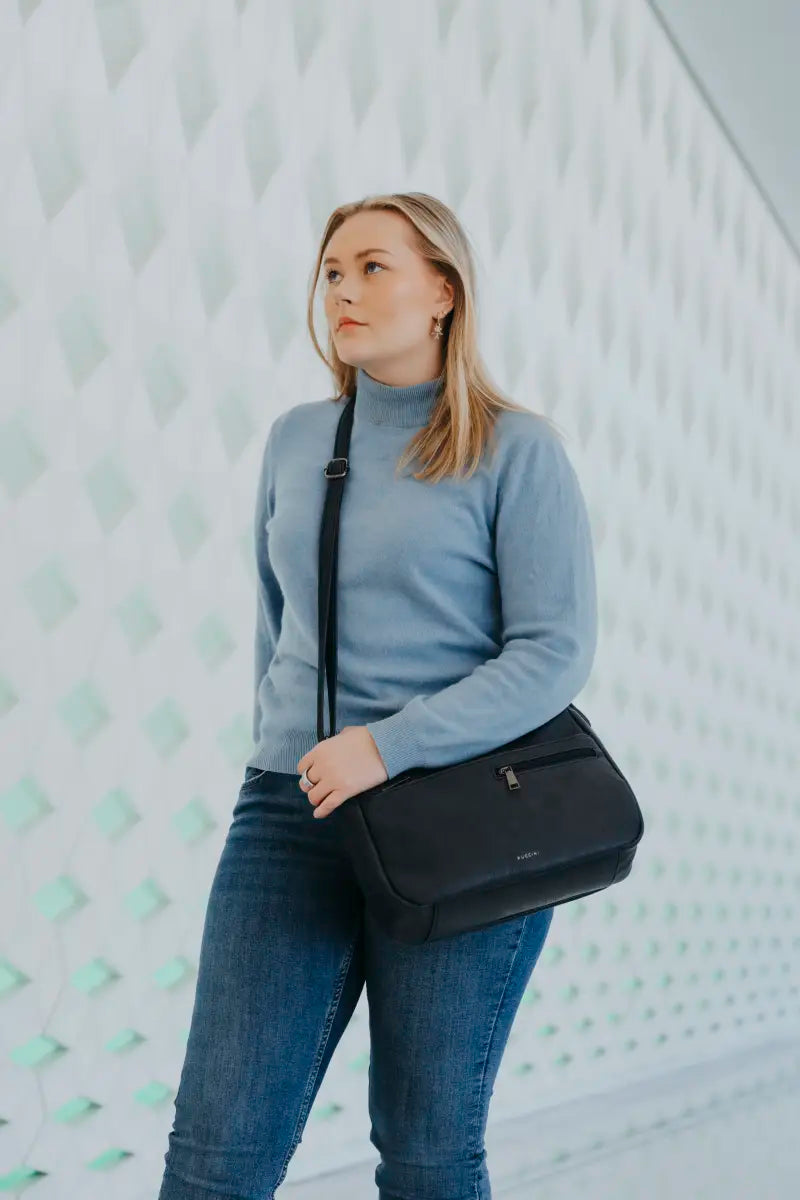 Puccini Isabel Crossover är utrustad med en steglöst justerbar axelrem (33–67 cm), vilket gör den enkel att anpassa efter önskat bärsätt – antingen crossbody eller på axeln. Den mjuka, veganvänliga PU-ytan ger en behaglig känsla och en hållbar finish som bevarar väskans form över tid. En perfekt vardagsväska för dig som vill kombinera stil, komfort och funktionalitet.