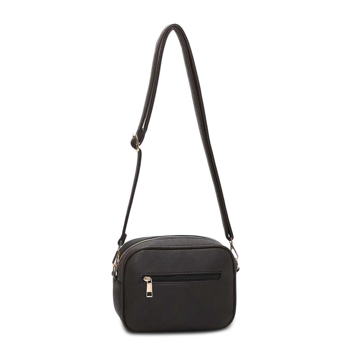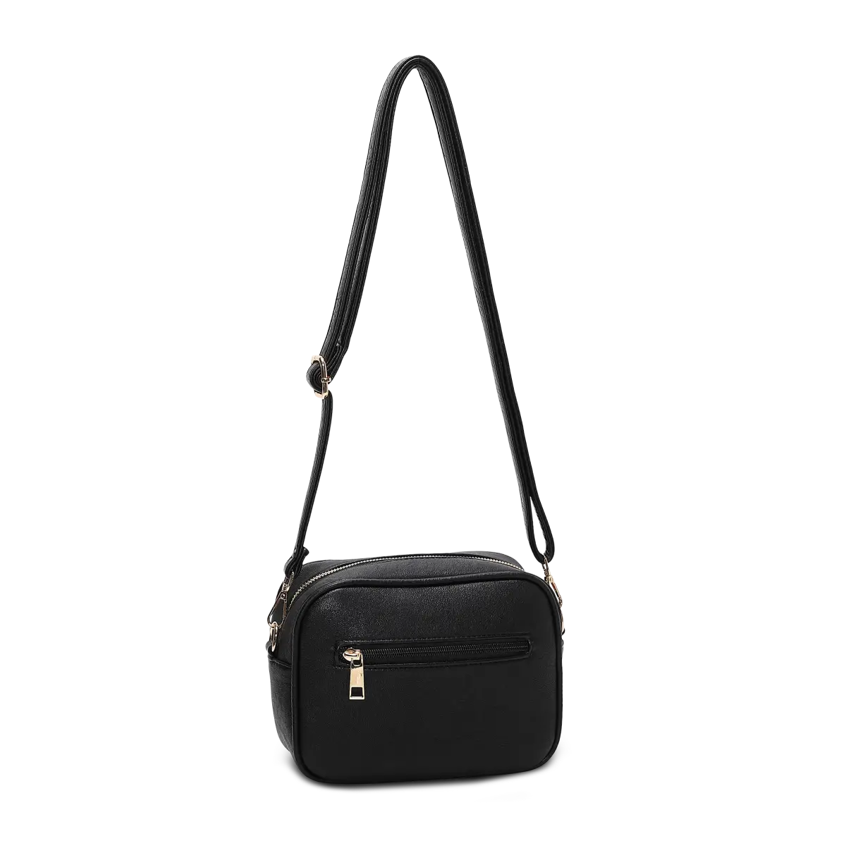 Trots sitt kompakta format erbjuder väskan praktiska förvaringsmöjligheter. Invändigt finns ett blixtlåsförsett fack samt ett öppet fack för mobil och småsaker. På framsidan finns en dold dragkedjeficka som ger både funktion och dekorativ detalj, och på baksidan ett 15 cm långt fack med dragkedja – perfekt för nycklar eller kort. En strukturerad men lättburen modell som håller ordning på det viktigaste.