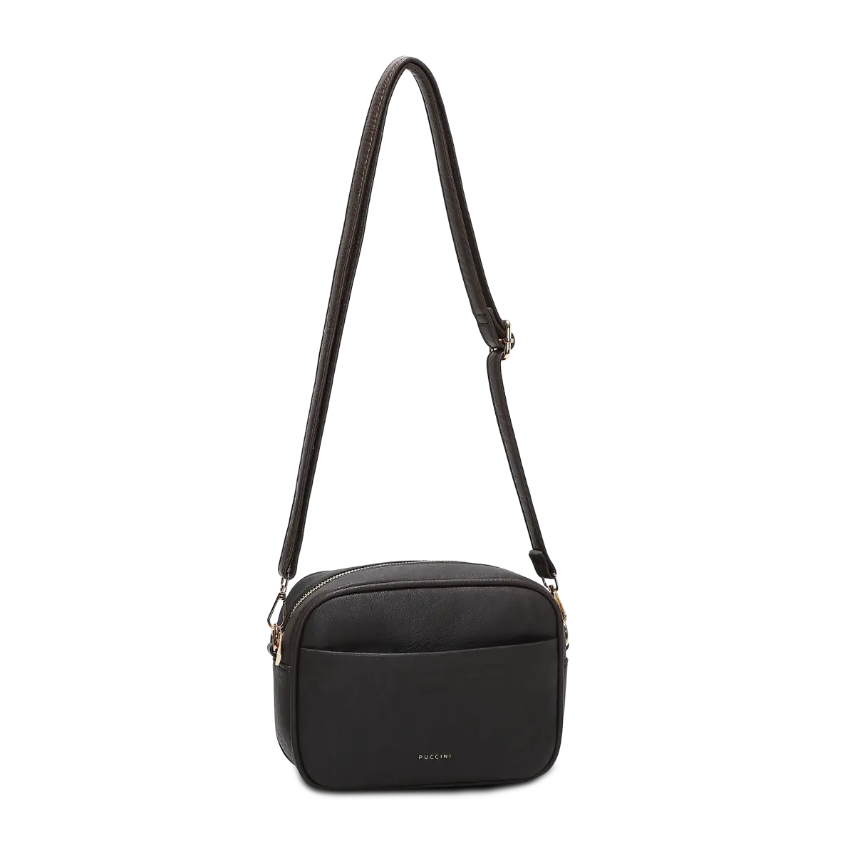 Puccini Linea Crossover 22 cm är en nätt och stilfull axelväska i camerabagmodell, tillverkad av mjuk skinnimitation med elegant läderlook. Den rena designen och de guldfärgade metalldetaljerna ger väskan ett feminint och tidlöst uttryck som passar perfekt för både vardag och fest. En liten men genomtänkt modell för dig som uppskattar enkelhet och stil.