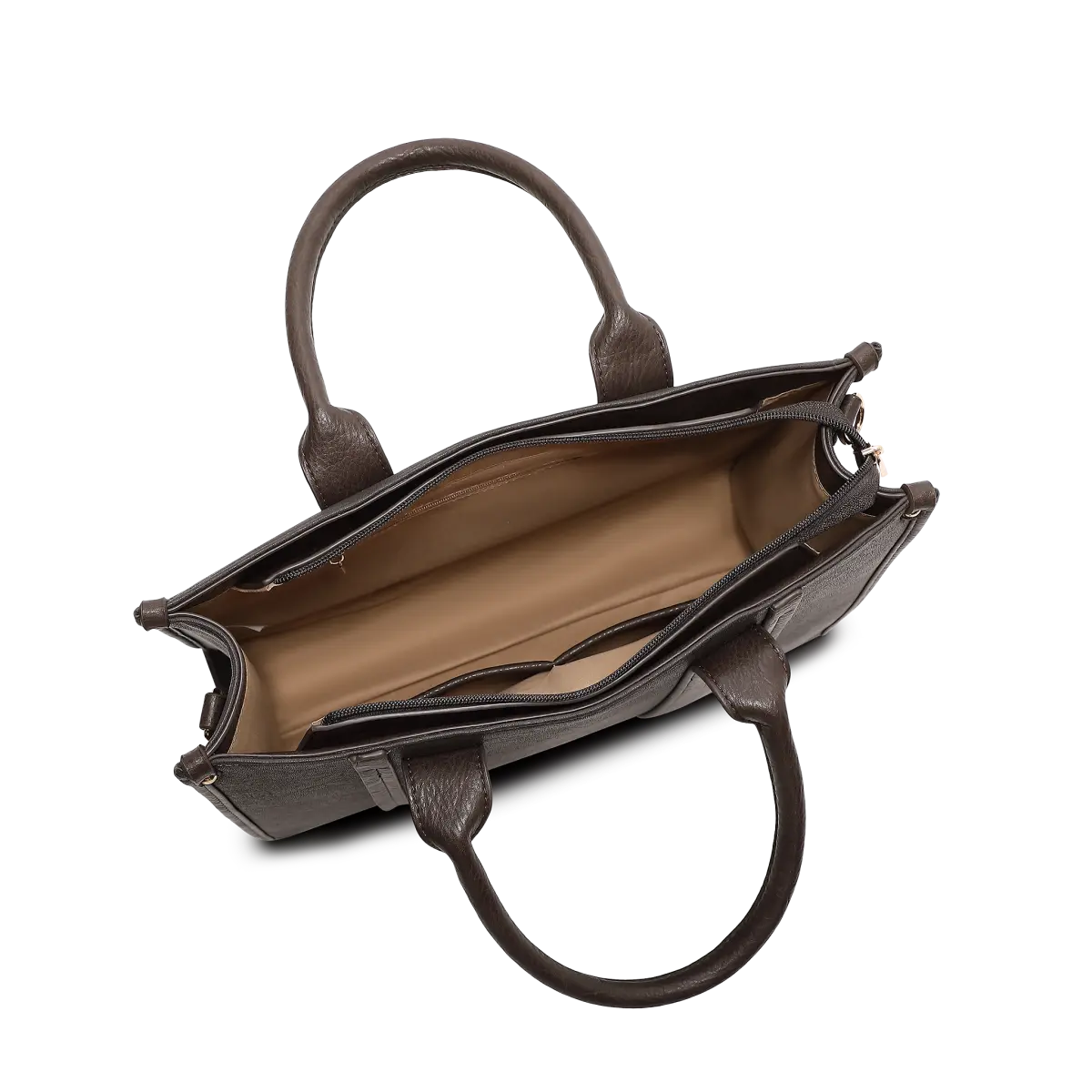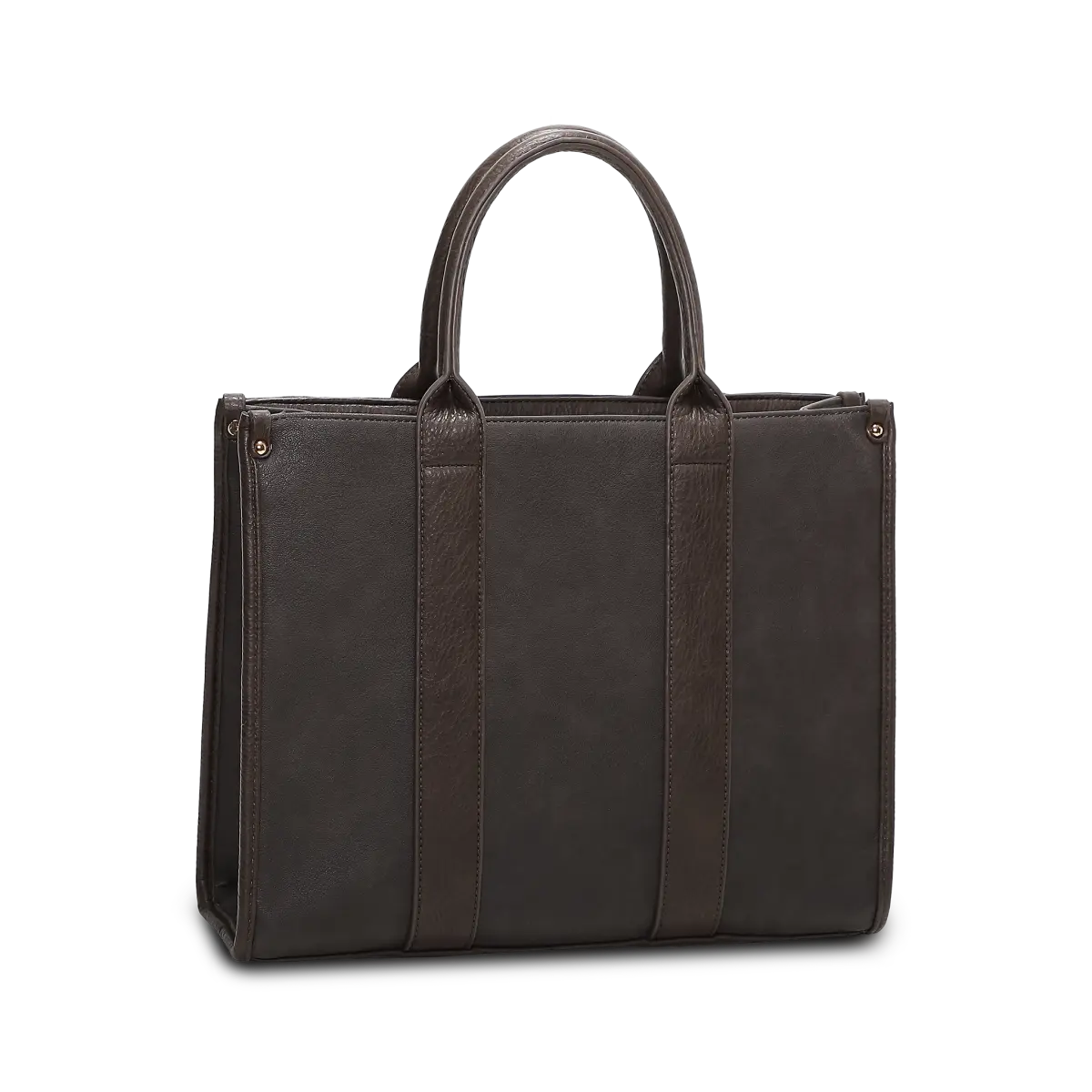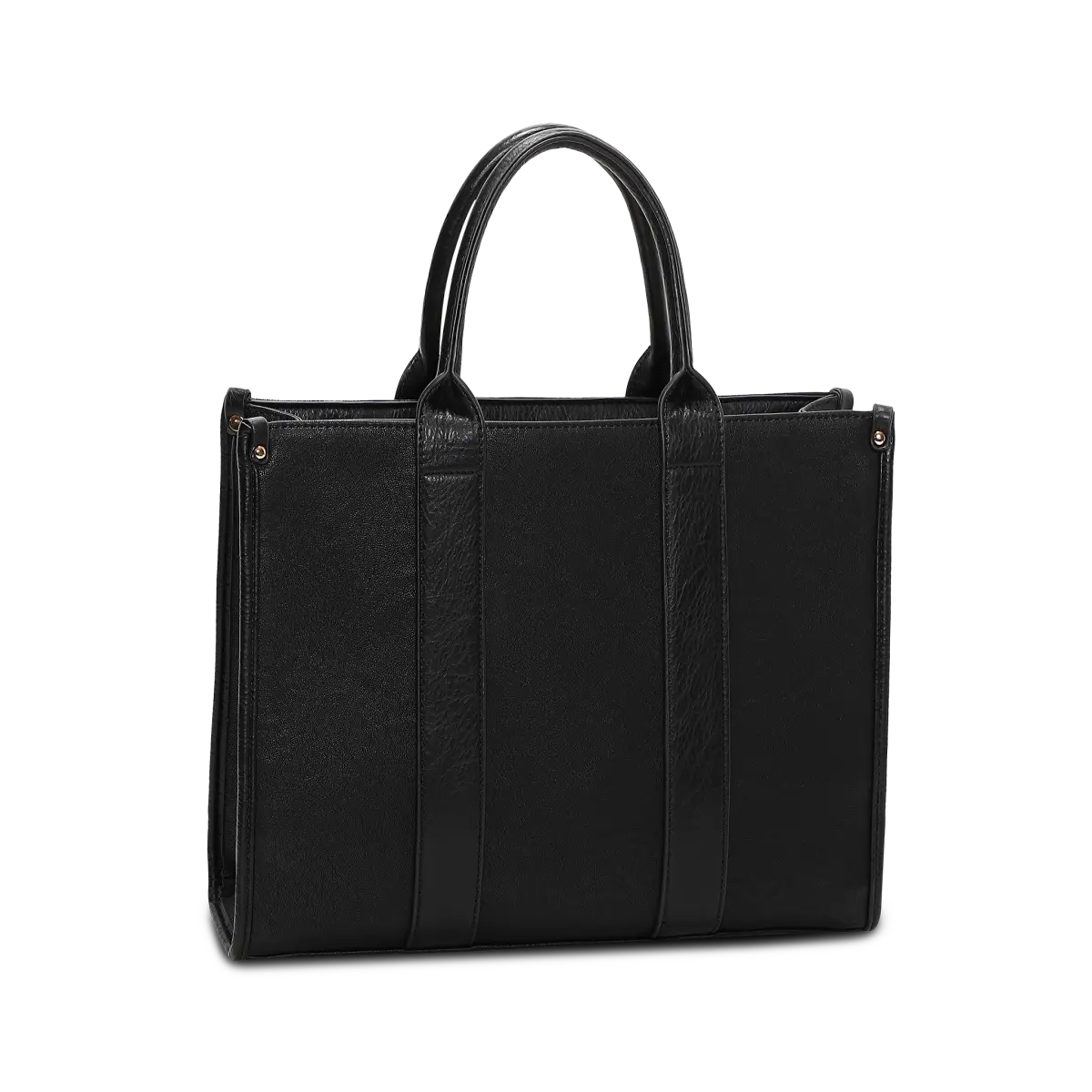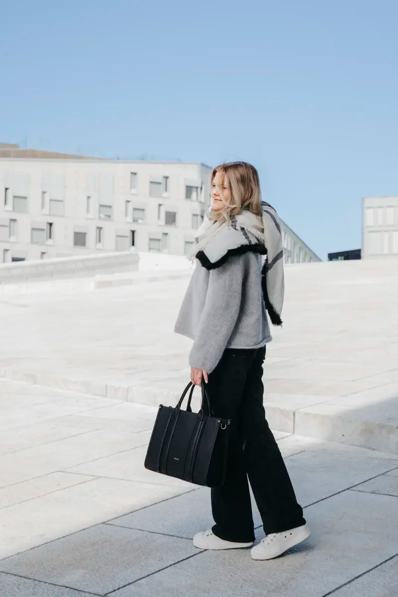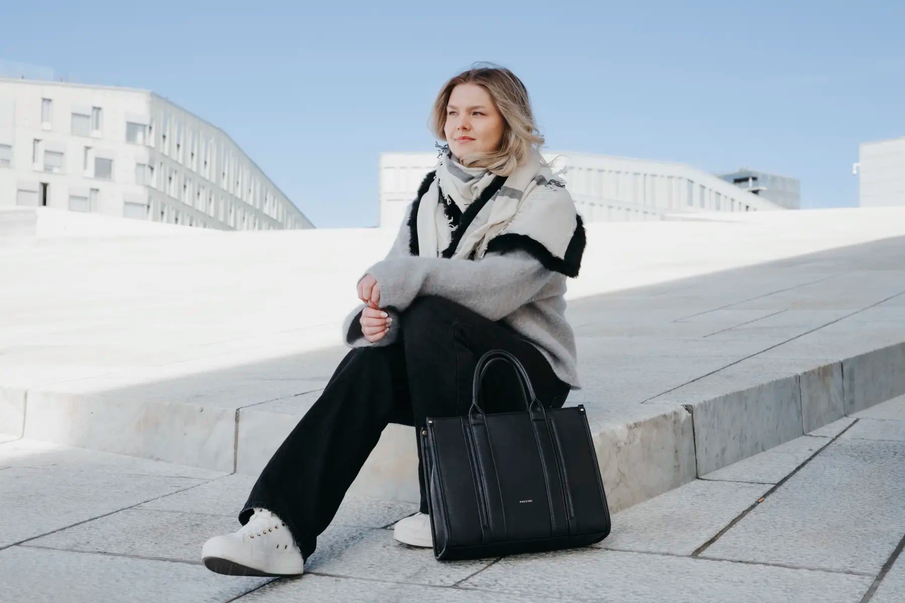 Med både fasta handtag och en avtagbar, justerbar axelrem kan du bära väskan på flera sätt. Handtagen har en bekväm dropplängd på 14 cm, medan axelremmen kan justeras mellan 37 cm och 72 cm för optimal passform oavsett stil. Väskan är veganvänlig och erbjuder en modern kombination av funktion och estetik som passar lika bra till kontoret som till stadens caféer.