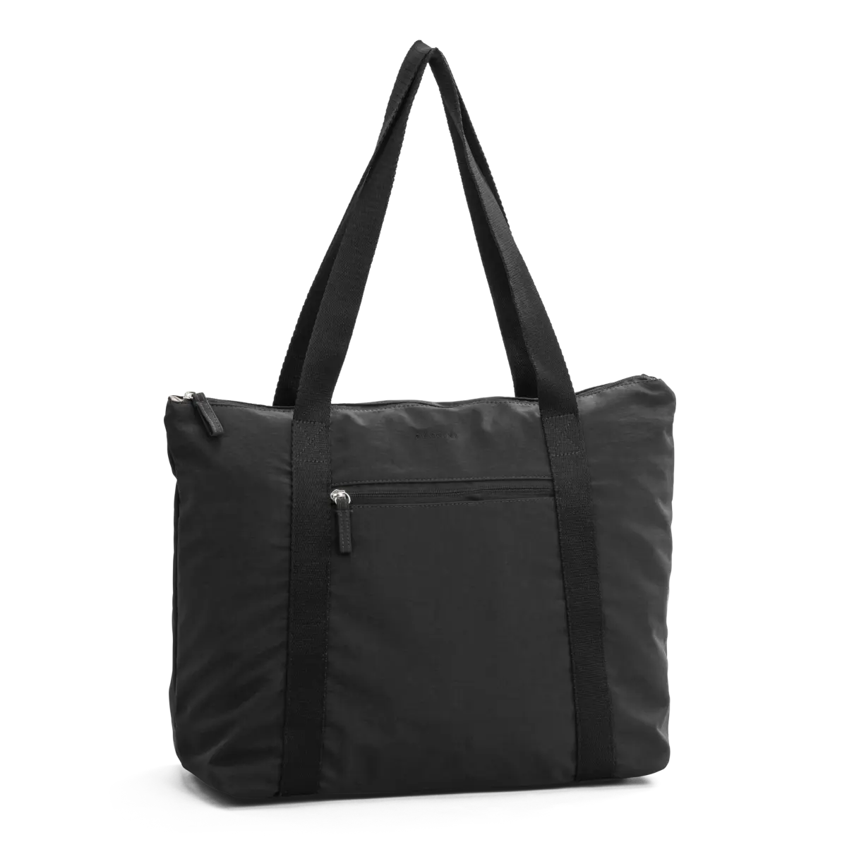 Insidan är rymlig och välorganiserad med flera öppna fack som hjälper dig att hålla ordning på dina tillhörigheter. Den ljusa fodringen gör det enkelt att hitta det du söker, och den övre dragkedjan håller innehållet säkert på plats. Perfekt som arbetsväska, shoppingväska eller handbagage.