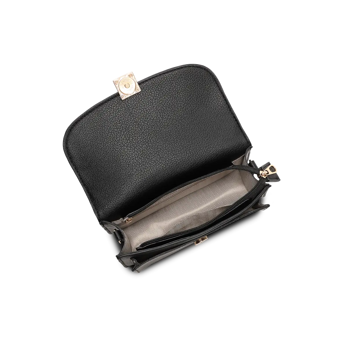 Väskan stängs med en magnetisk klaff och har dessutom ett blixtlåsförsett huvudfack för extra säkerhet. På fronten finns ett öppet fack, perfekt för mobilen eller andra småsaker du vill ha nära till hands. Invändigt finns ett blixtlåsförsett fack och ett öppet fack för ordning och struktur.