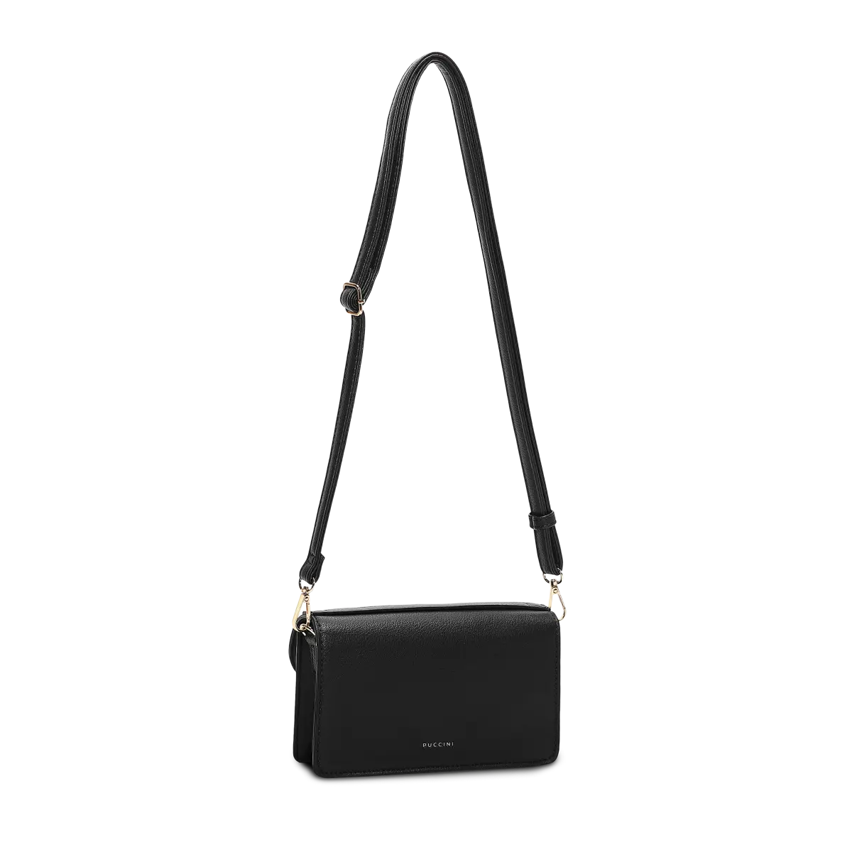 Puccini Martina levereras med en steglöst justerbar och avtagbar axelrem med dropplängd 35–70 cm, vilket gör att väskan kan bäras både crossbody och över axeln. Det korta handtaget på toppen (dropplängd 2 cm) gör att den även kan bäras elegant i handen – en liten detalj som lyfter hela stilen.