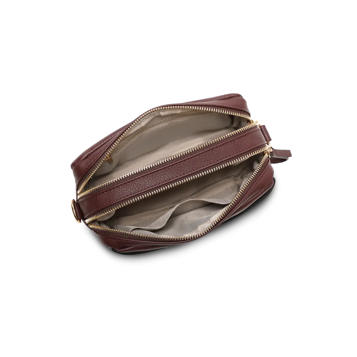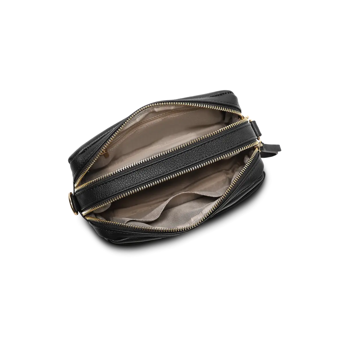 Väskan har två separata huvudfack med dragkedja som gör det enkelt att hålla ordning på dina tillhörigheter. På insidan finns ett blixtlåsförsett fack och ett öppet fack för mindre saker som nycklar, kort eller mobil. Dessutom har väskan ett bakre fack med dragkedja samt ett främre öppet fack med magnetlås för snabb åtkomst till det du använder mest.