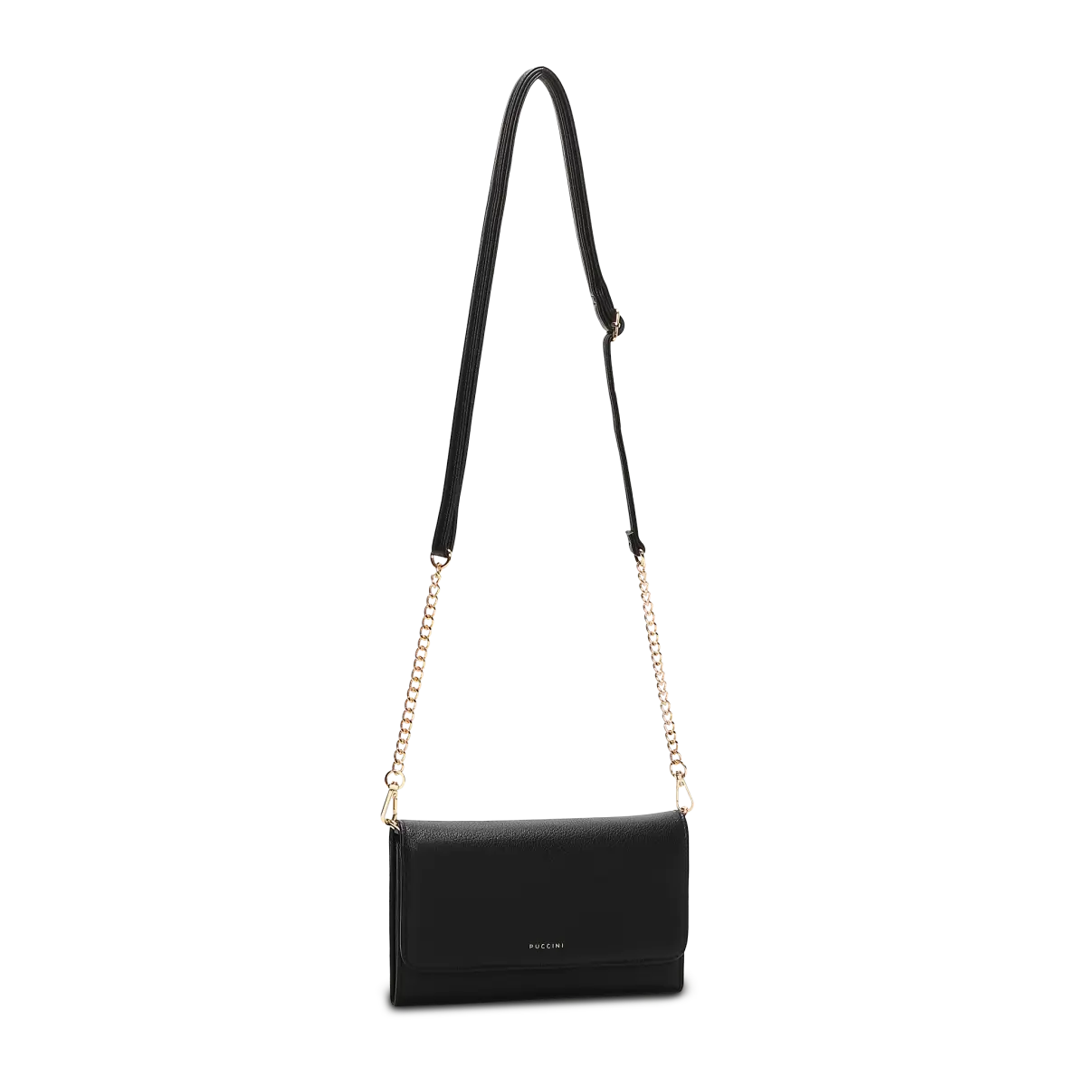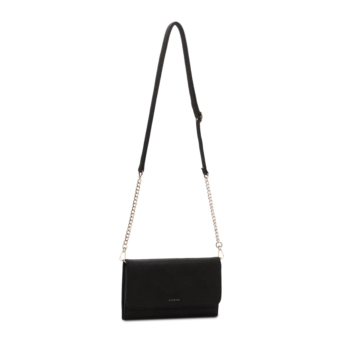 Puccini Martina levereras med en steglöst justerbar och avtagbar axelrem (47–77 cm), vilket gör att du kan bära den över axeln, crossbody eller som clutch. Klaffen stängs med tryckknapp för snabb åtkomst samtidigt som innehållet hålls säkert på plats.