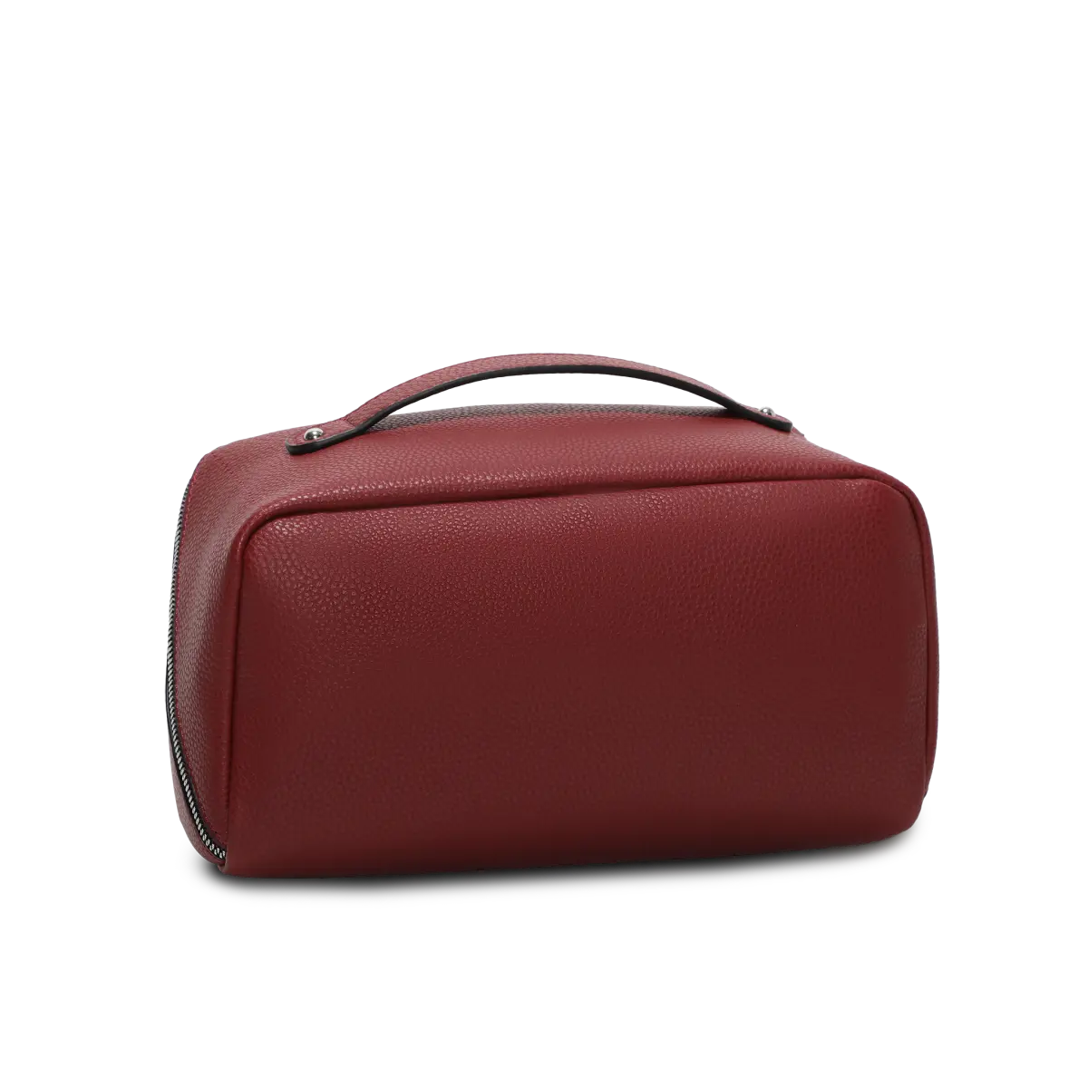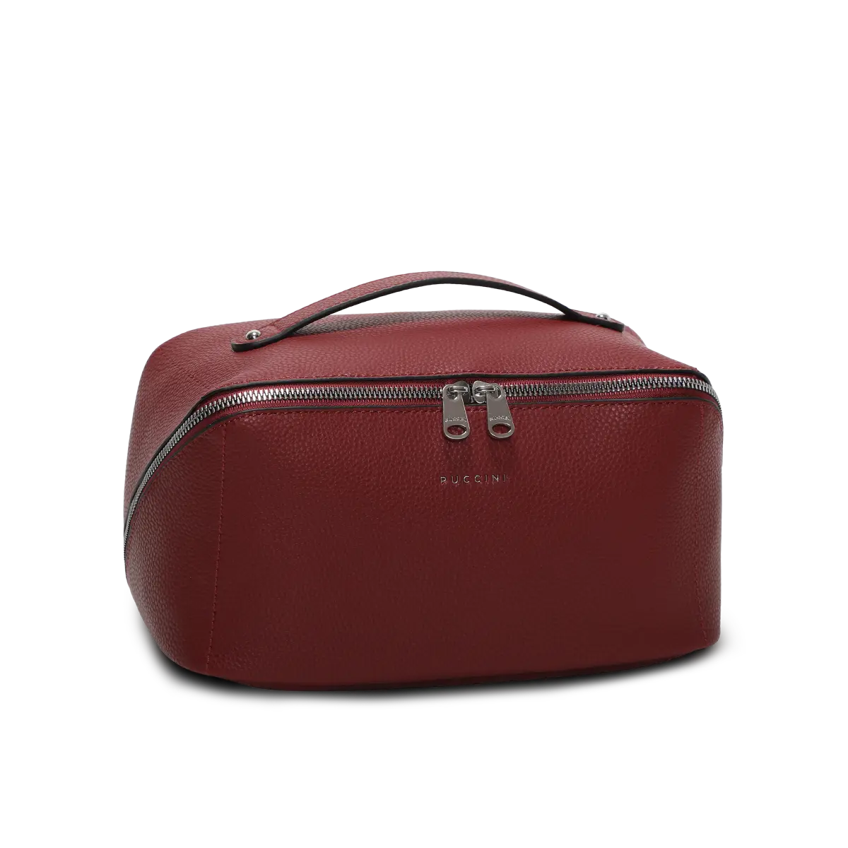 Denna necessär från Puccini erbjuder en elegant och funktionell lösning för att organisera dina skönhetsprodukter och hygienartiklar. Med sin strukturerade skinnimitation och smarta design är den både rymlig och lättillgänglig. Den breda, diagonala öppningen med dubbla blixtlåsdragare ger en enkel överblick över innehållet.
