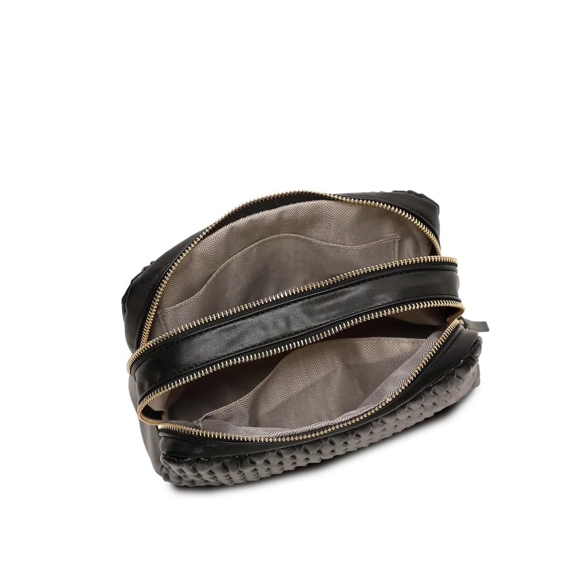 Necessären har två separata fack med dragkedja, vilket gör det enkelt att hålla ordning på smink, hygienartiklar och andra småsaker. Insidan är utrustad med två öppna fack för ytterligare organisering. Trots det kompakta formatet erbjuder väskan gott om plats och är lätt att packa i både handbagage och resväska.